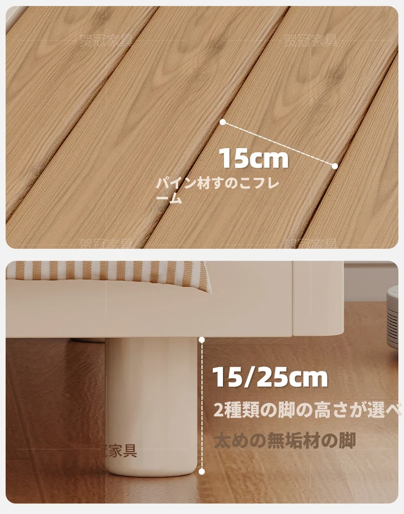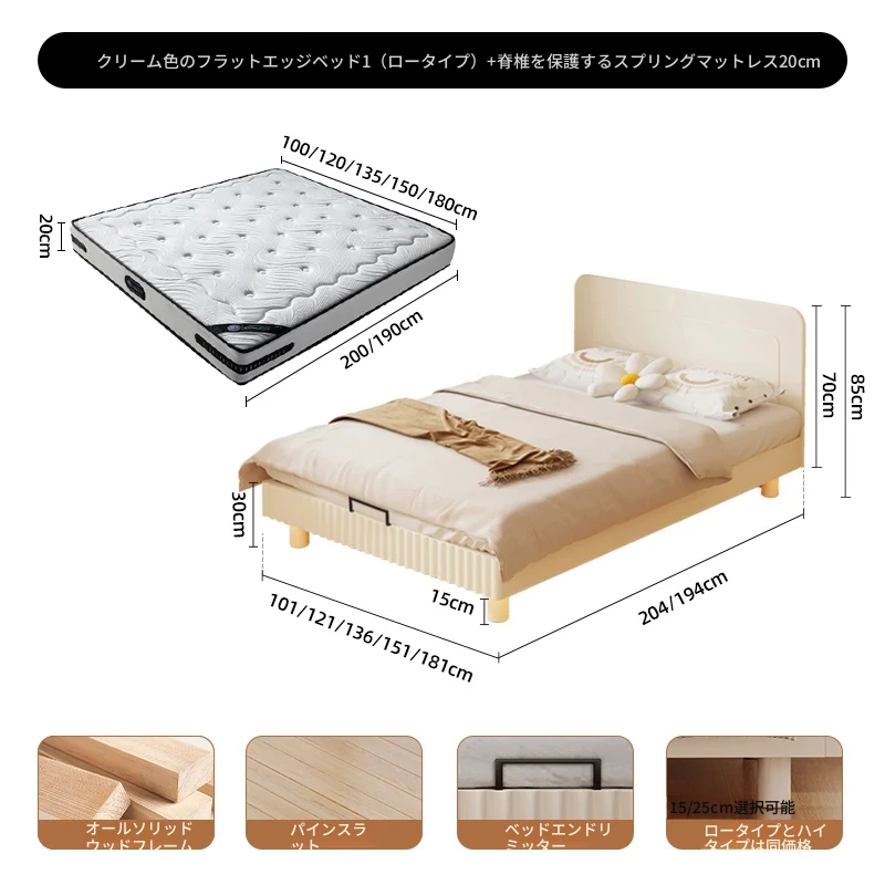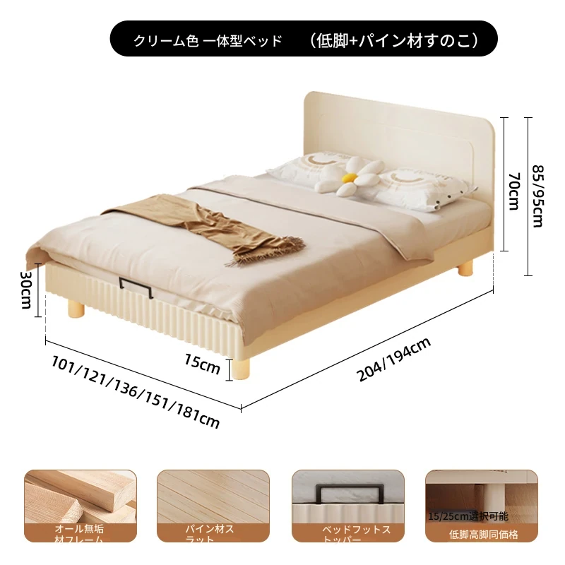 クリームスタイル | ローチェア【敷き詰め15CMパイン材ベッドボード】