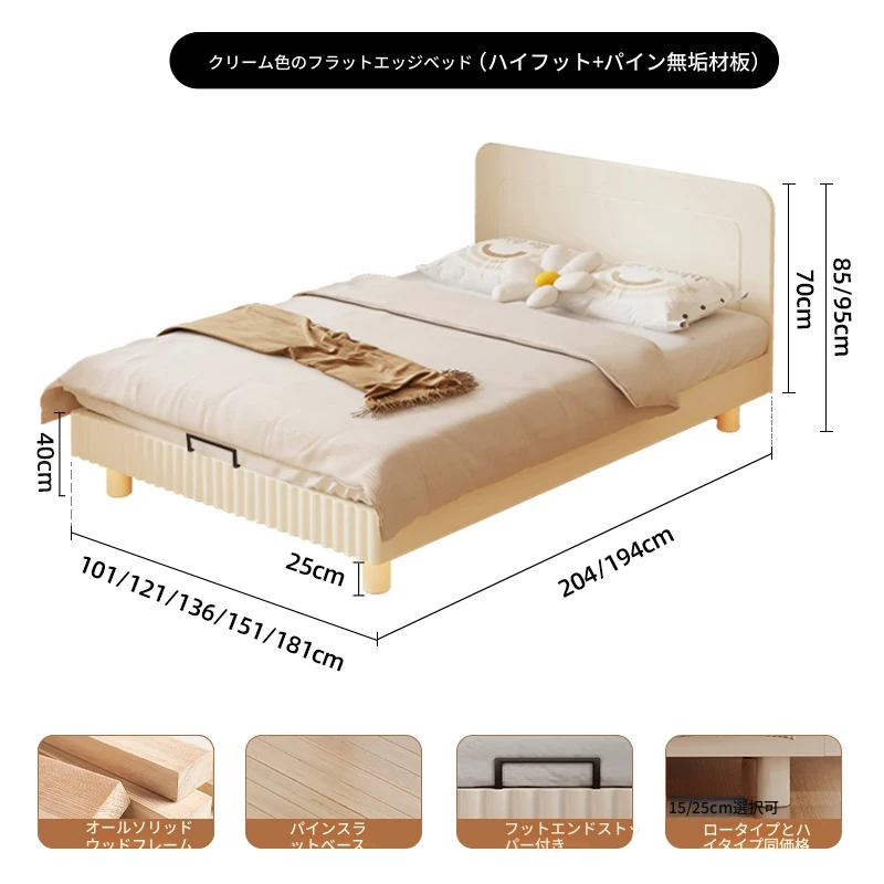 クリームスタイル | ハイチェア【敷き詰め15CMパイン材ベッドボード】