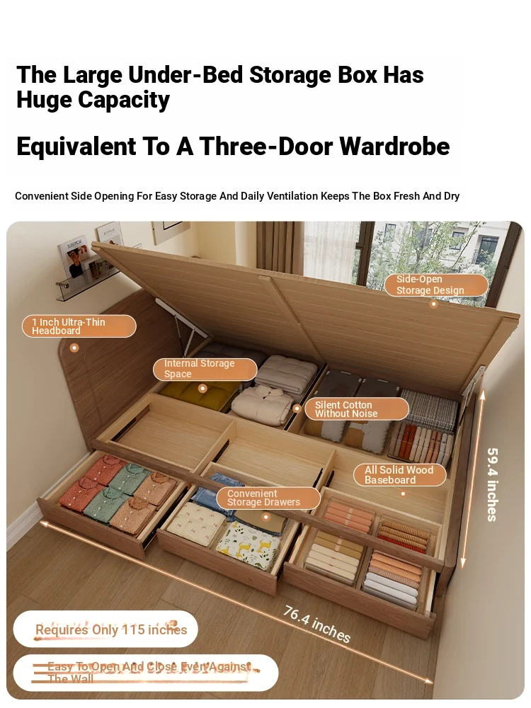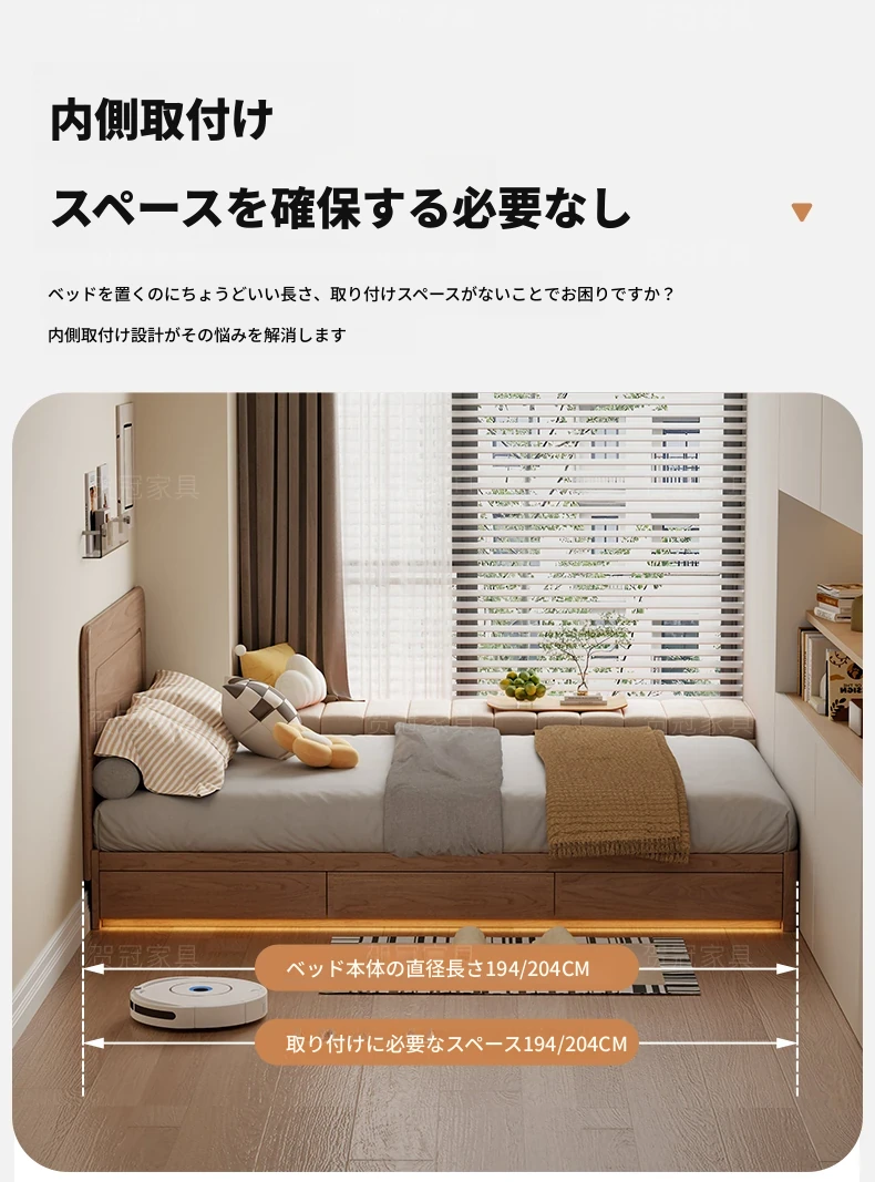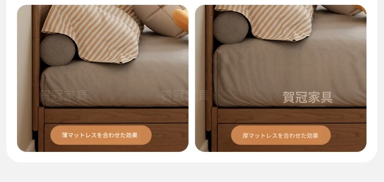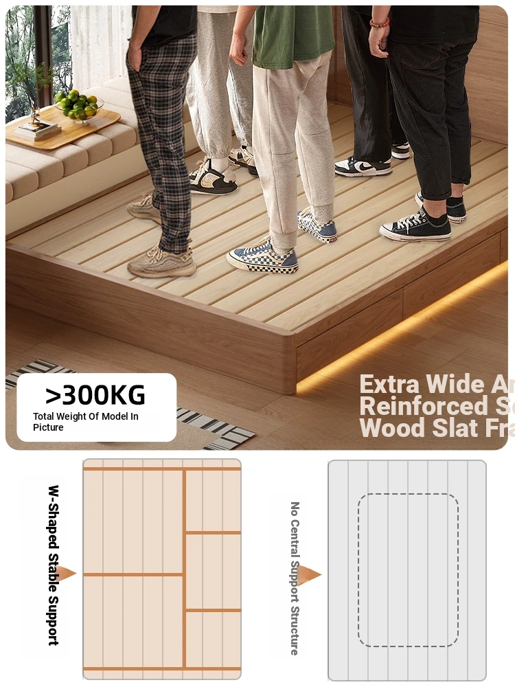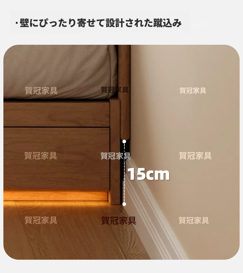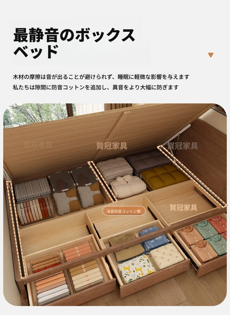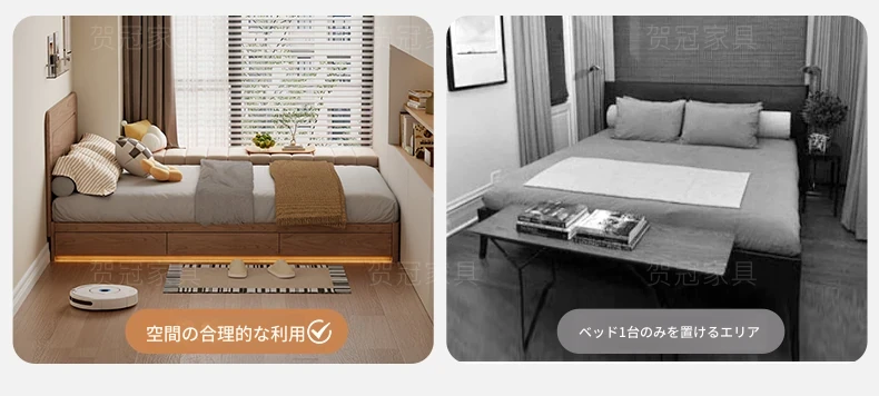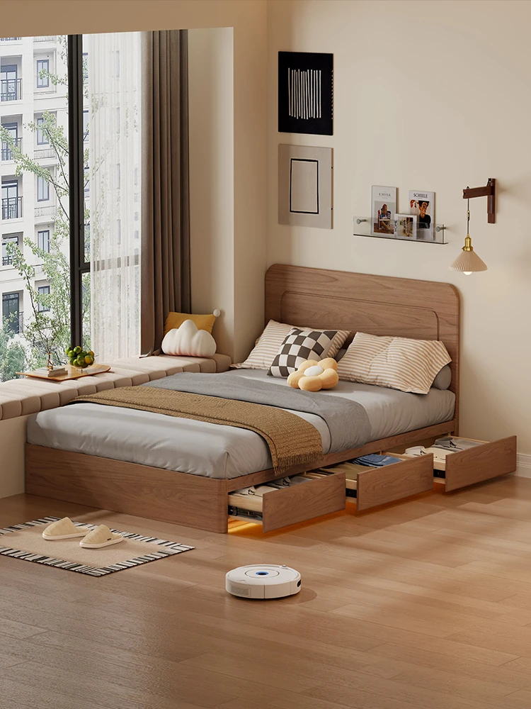和風侘び寂びスタイルの無垢材ベッド|150cm防湿スラット&引き出し付きハイ収納ベッド|主寝室にぴったり!古き良きデザインでおしゃれ空間を演出!