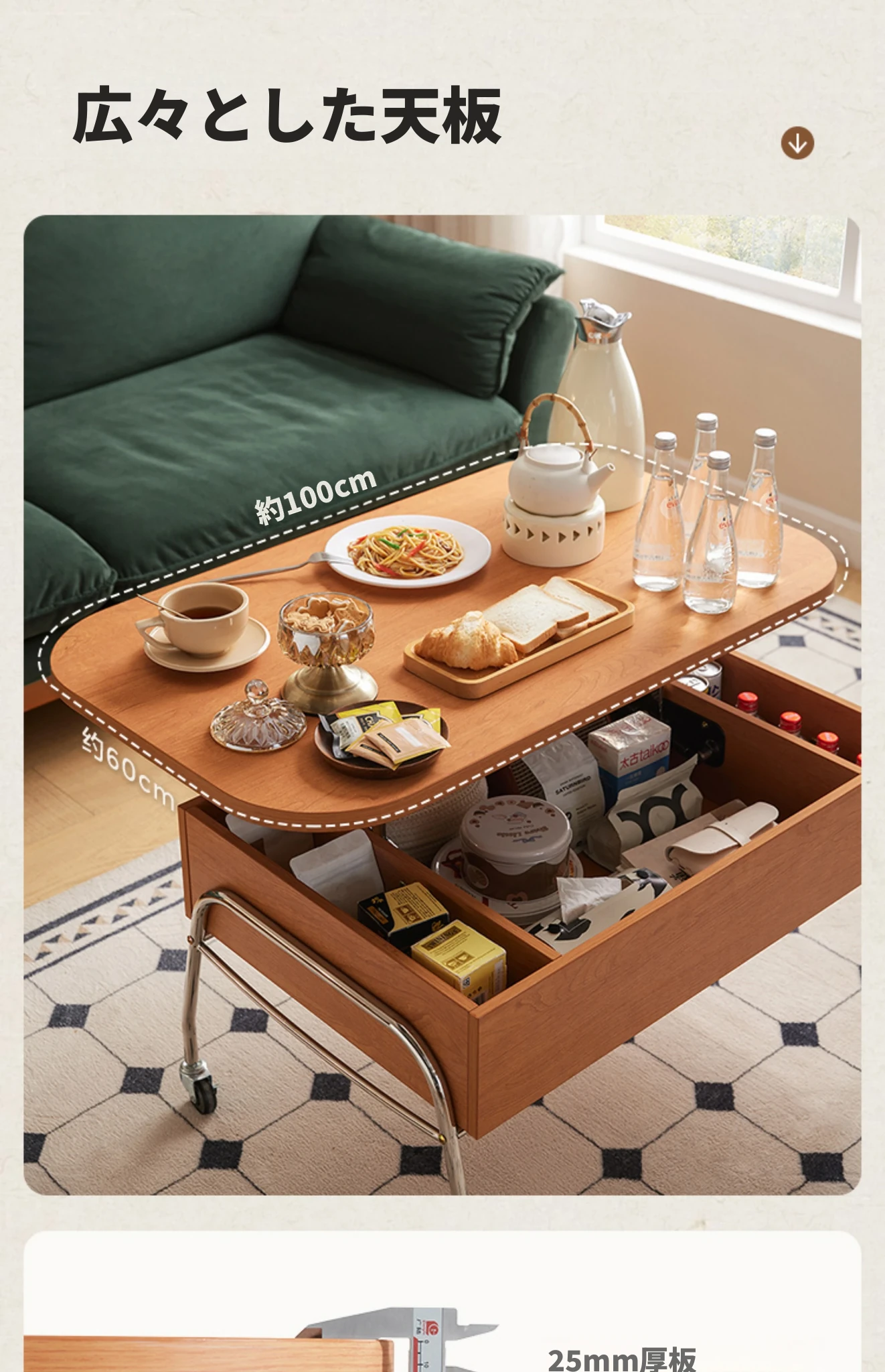 リンシー家具の昇降式モバイルコーヒーテーブル - 2024年新作!リビングに最適なコンパクトデザイン、狭いスペースにもぴったりな林氏木業OW1L。居心地の良い時間をお楽しみください!