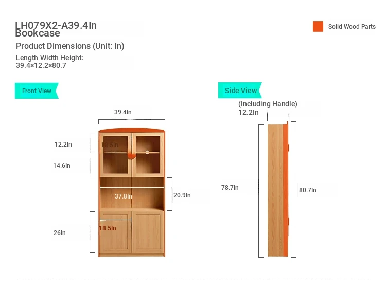 リンシー家具のリビングルーム用コンビネーション書棚 - 扉付きコーナー書架、無垢木製、子供用収納キャビネット、リンシーウッド LH【おしゃれで機能的な収納、家族みんなにぴったり】