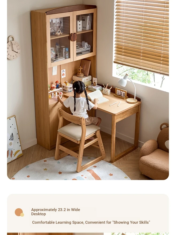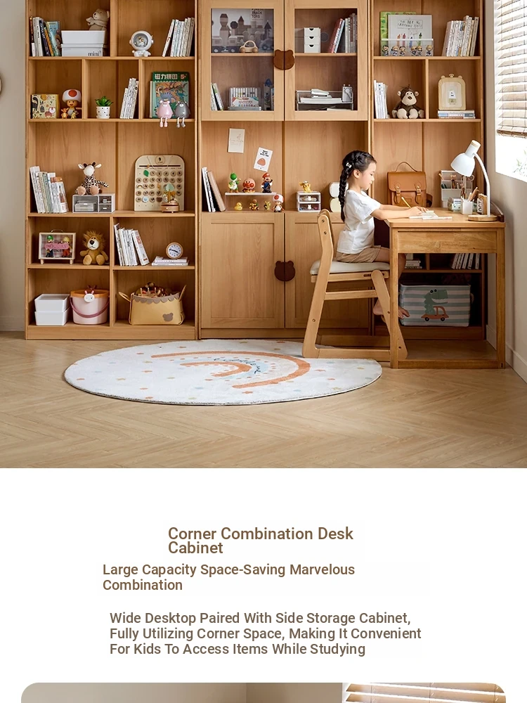 [39.37in*62.99in | Desk cabinet combination] corner desk + combination bookcase, open + solid wood book chair