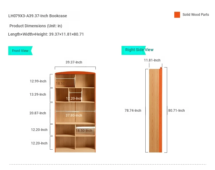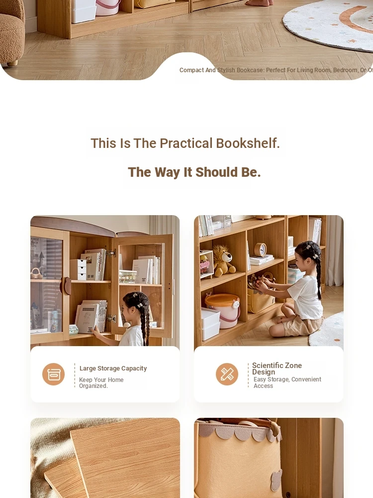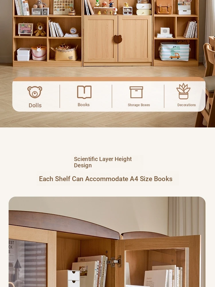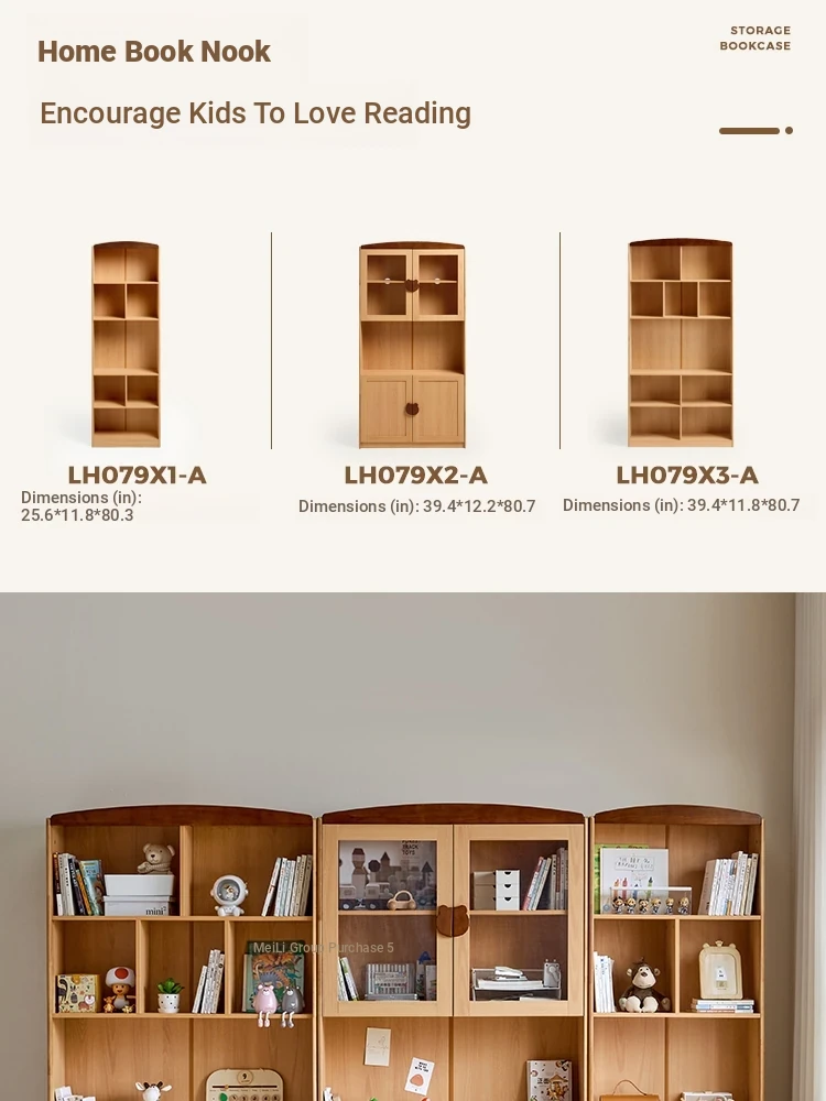 Lins Home Living Room Corner Bookshelf with Doors - Solid Wood Children’s Storage Cabinet - Stylish and Functional Design for Your Home, Perfect for Organizing Books and Toys - Lins Furniture LH