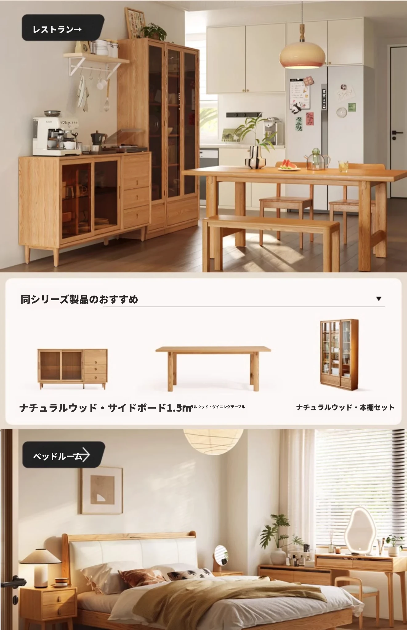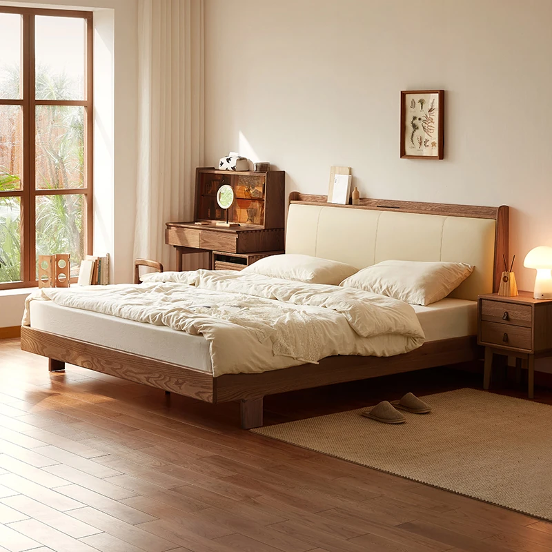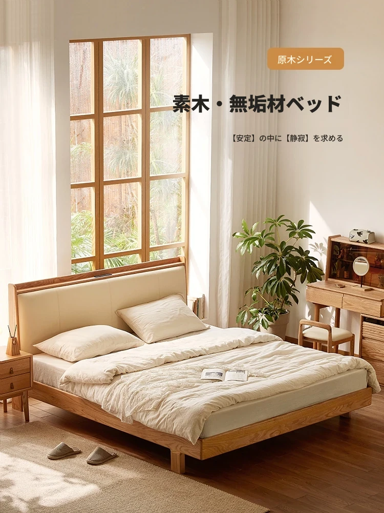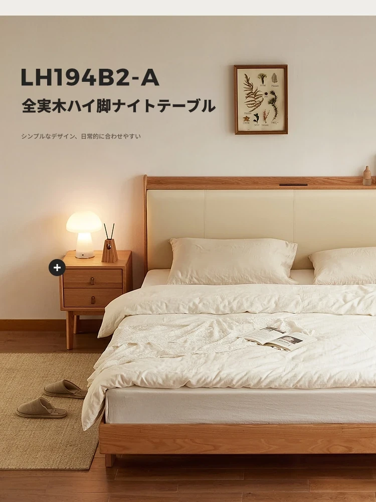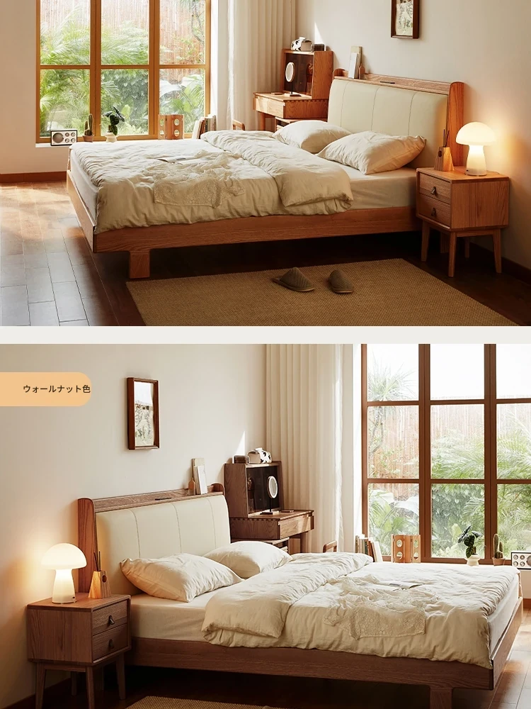 【ウォールナット|オーク】ソフトパッケージ無垢材ベッド+ナイトテーブル