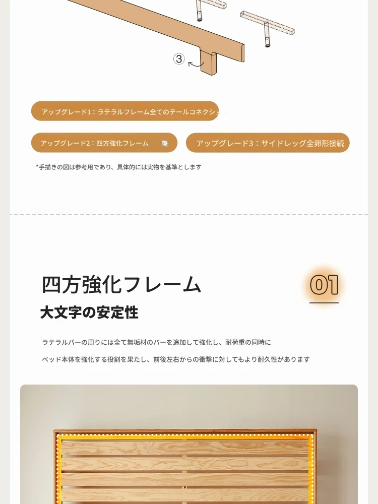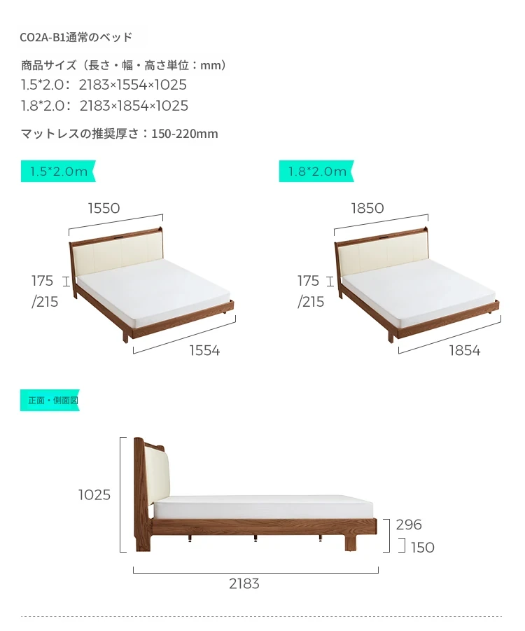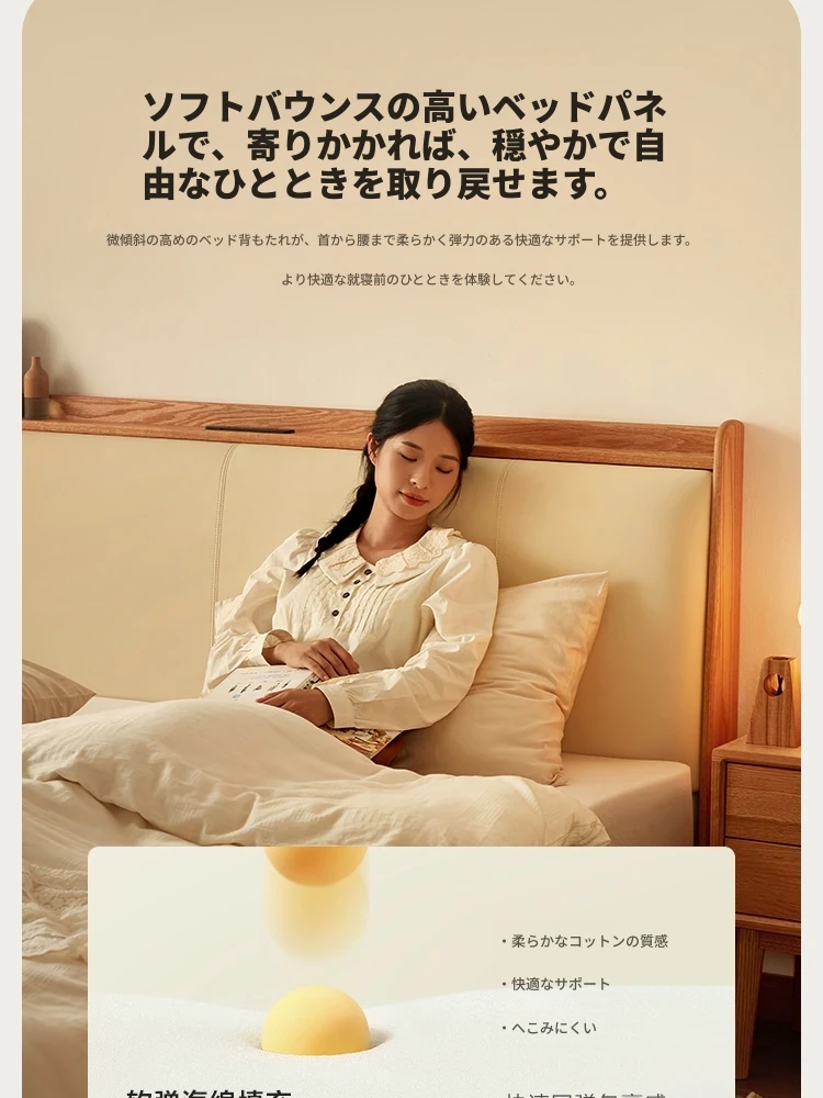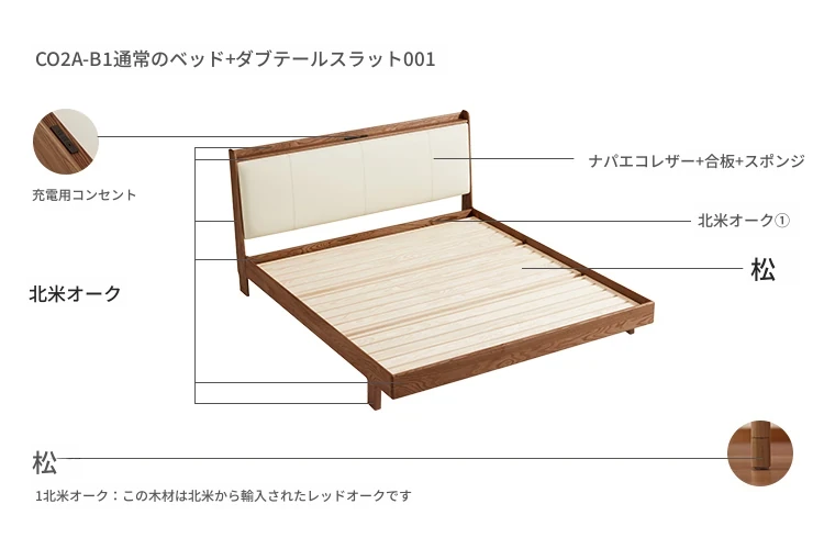 【ウォールナット|オーク】ソフトパッケージ無垢材ベッド