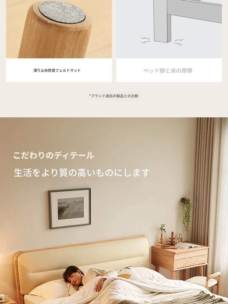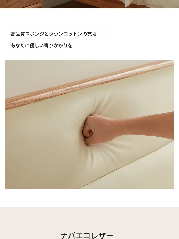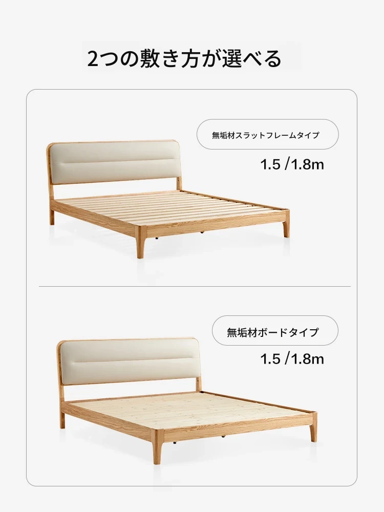 【本革タイプ|ベッドボード|シングルベッド】無垢材ベッド