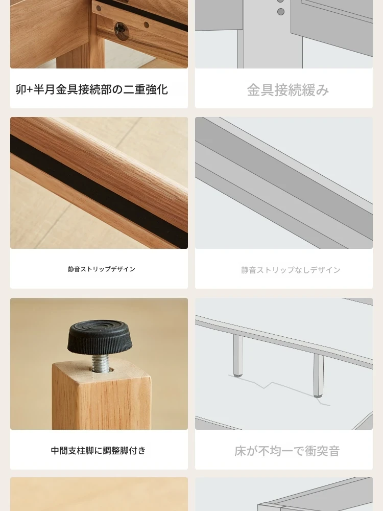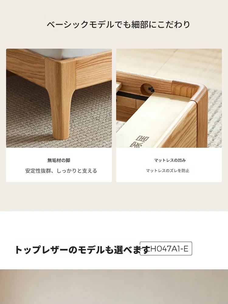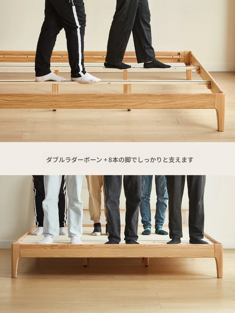 【本革タイプ|スラット|セット】無垢材ベッド+マットレスA(200mm)