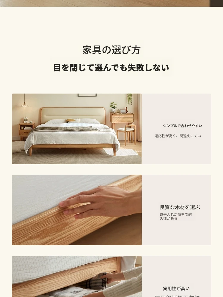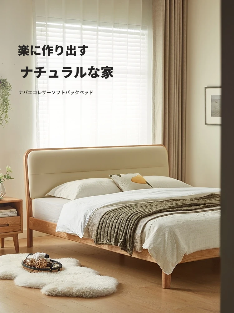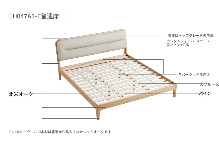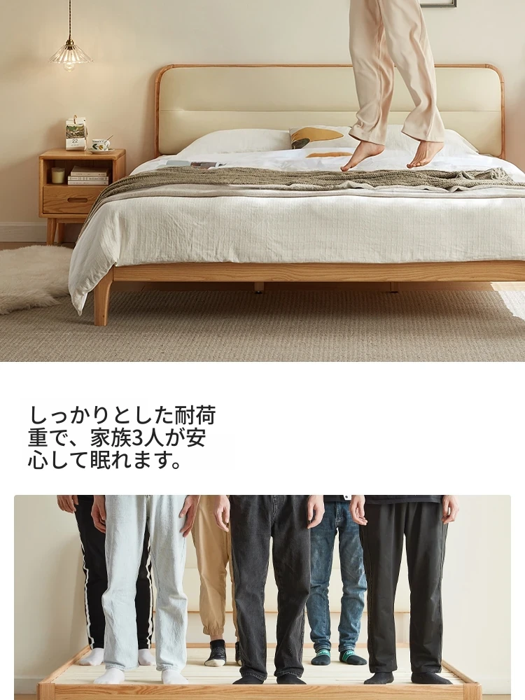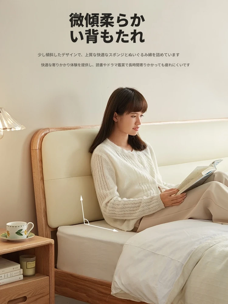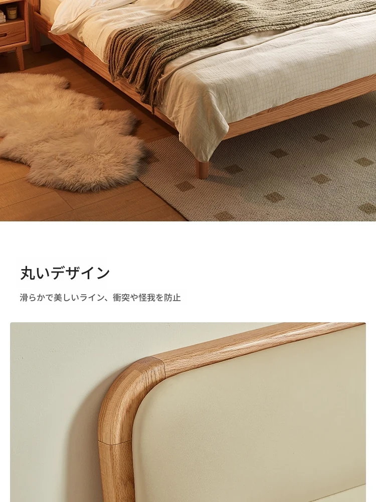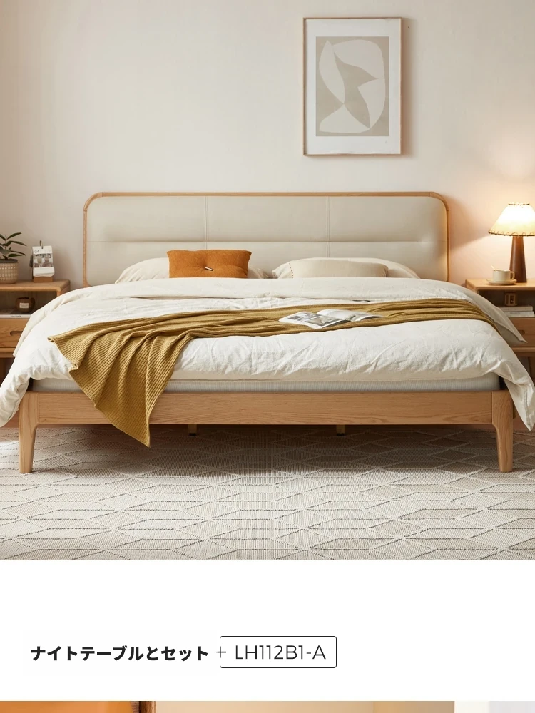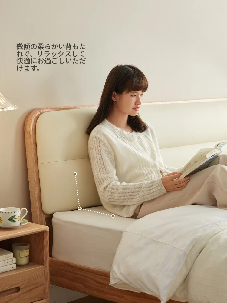 林氏家居 2025年新作 オーク材 丸みを帯びたデザインのダブルベッド 1.5m 高級ウレタン背もたれ付き主寝室用 天然木仕様・安心の品質