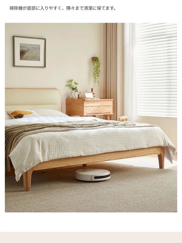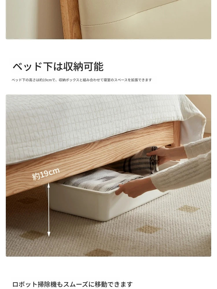 【本革タイプ|スラット|セット】無垢材ベッド+ナイトテーブル+マットレスA(200mm)