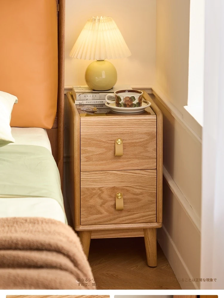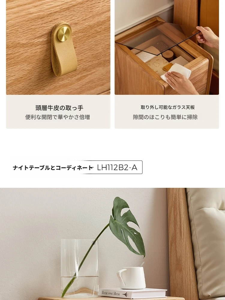 【本革タイプ|スラット|セット】無垢材ベッド+ナイトテーブル