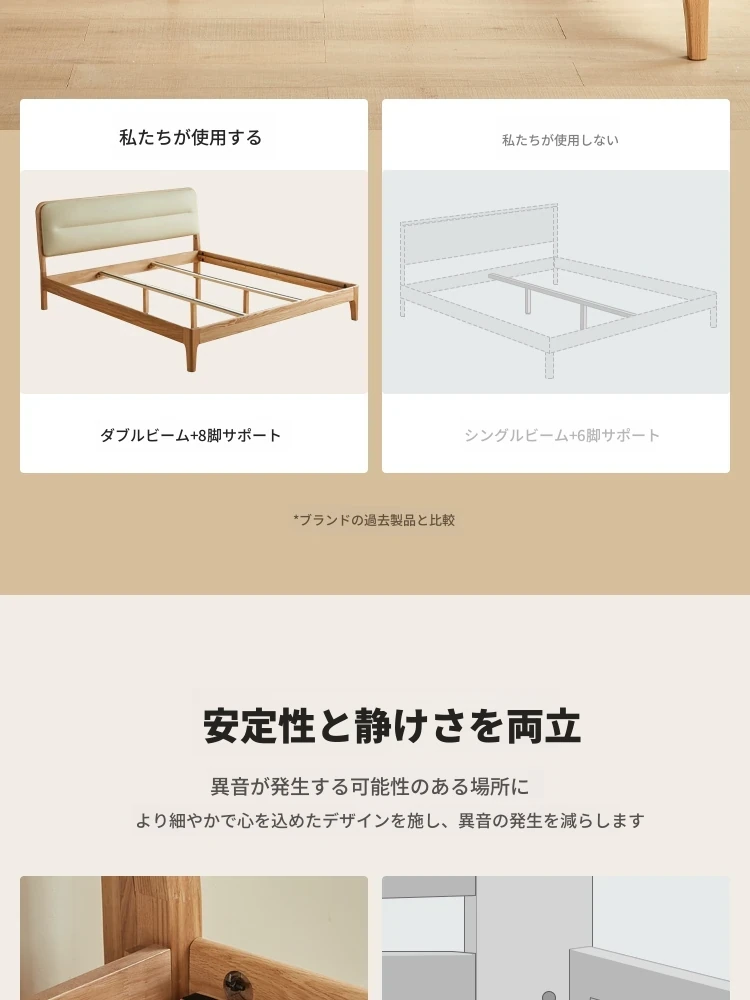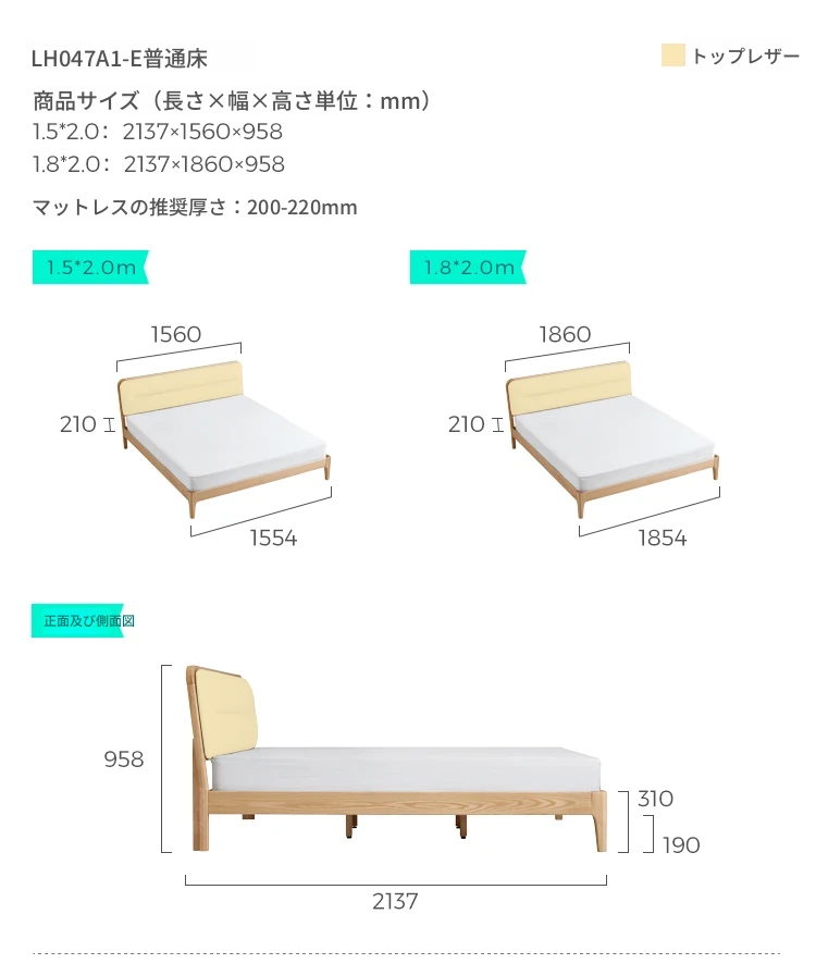 【本革タイプ|ベッドボード|セット】無垢材ベッド+マットレスA(200mm)