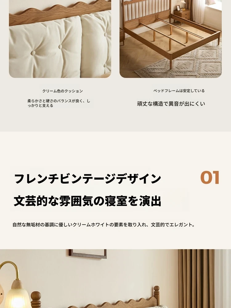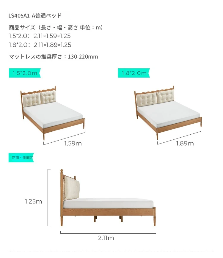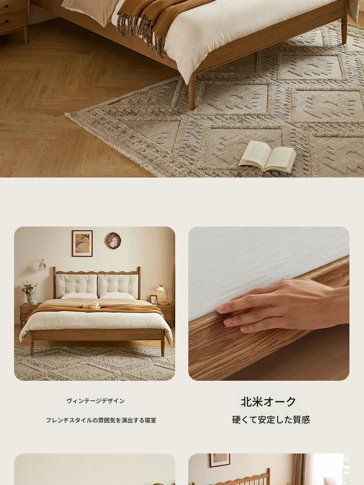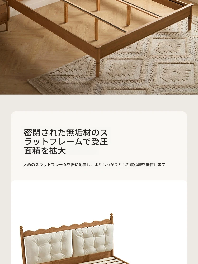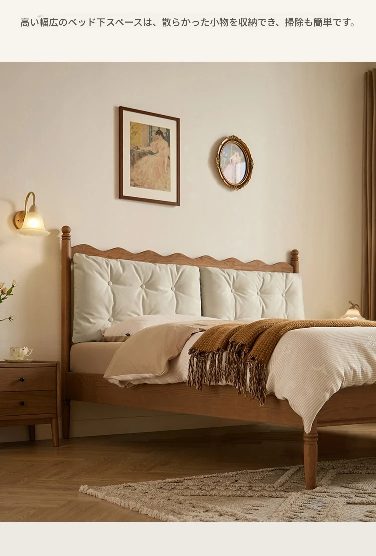リンシー家具 ソフトパック 無垢材ベッド 1.5m フランス風 レトロ チェリーウッド ダブルベッド 2025年新作 - 上質な睡眠を提供する、洗練されたデザインのベッドです。