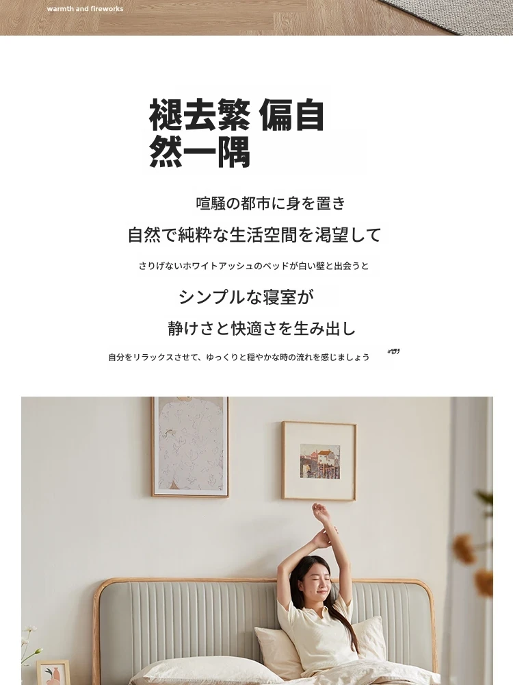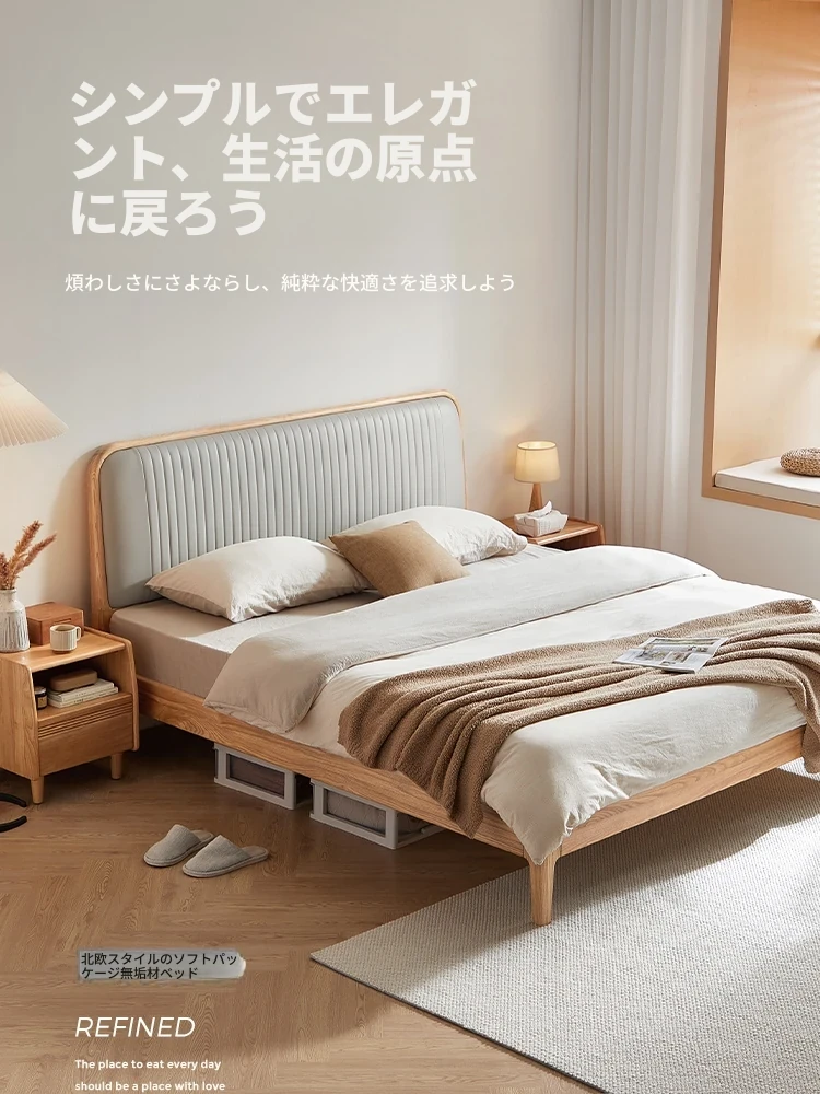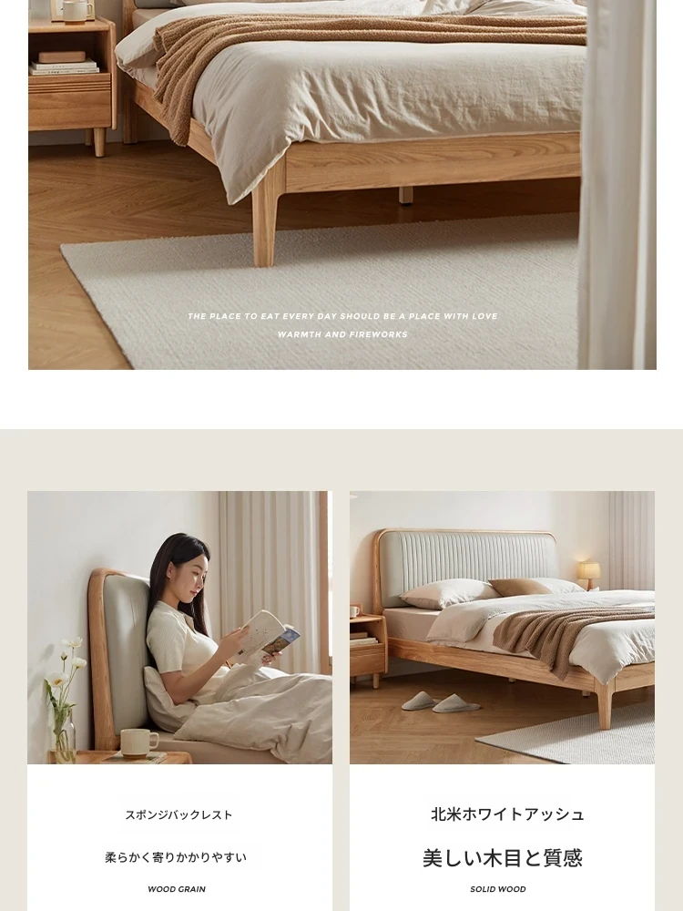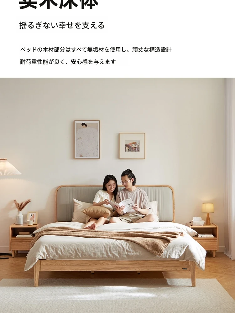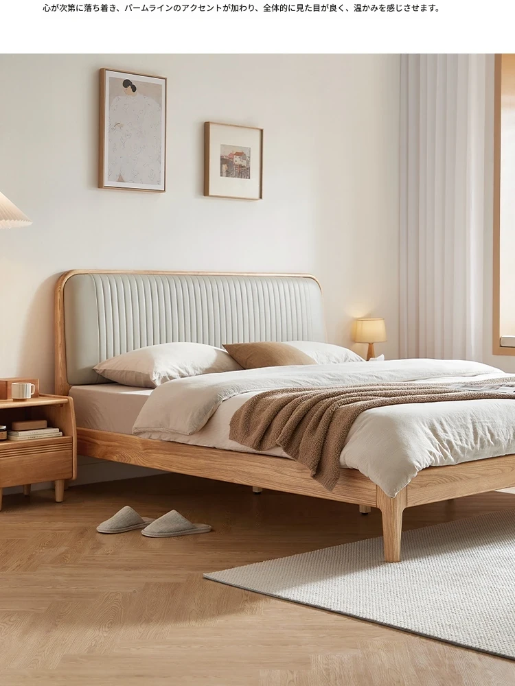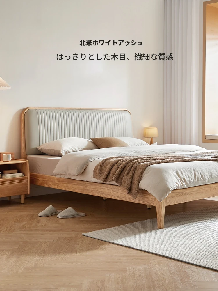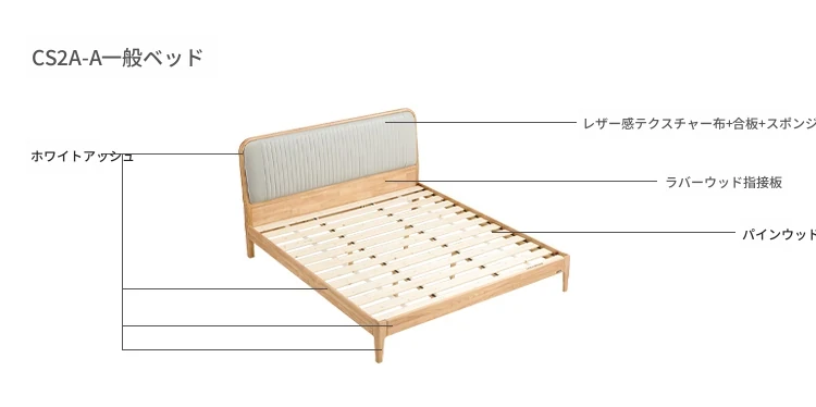 林氏家具 ホワイトアッシュウッド ソフトパッキング 実木ダブルベッド 1.5m 主寝室用 高品質スラットフレーム CS2A【ラグジュアリーな寝心地を提供】