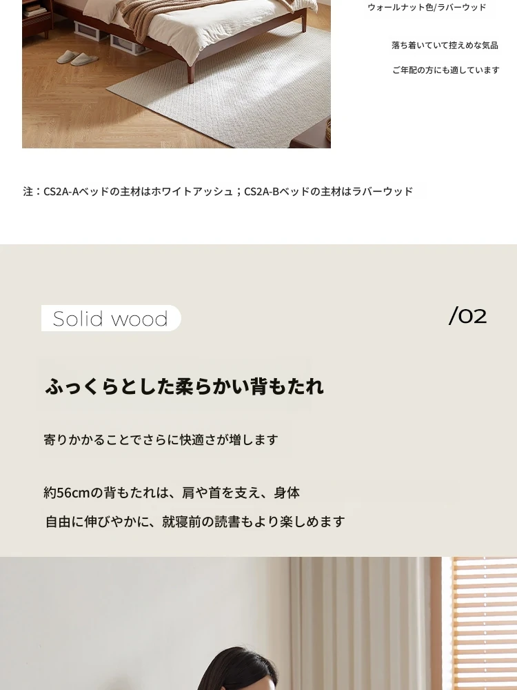 【ベッドボード|ライトオーク色+カーボングレー】CS2A-Aベッドフレーム収納なし (マットレスは含まれません)