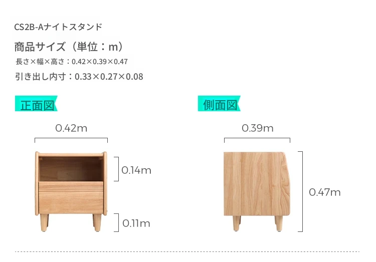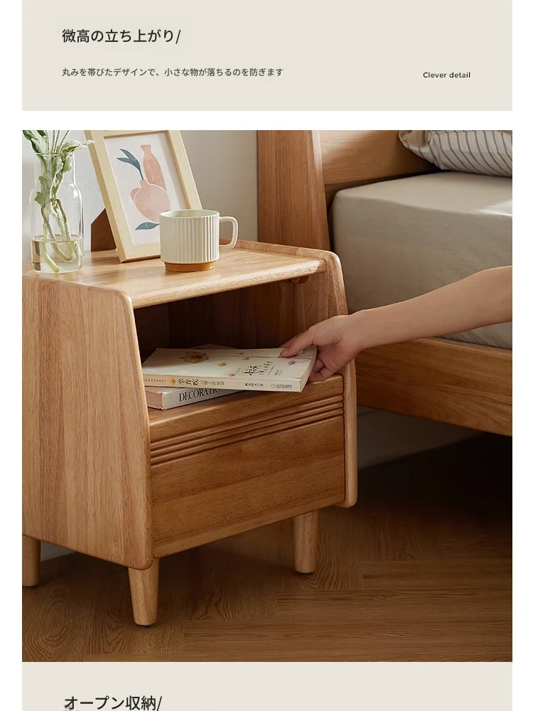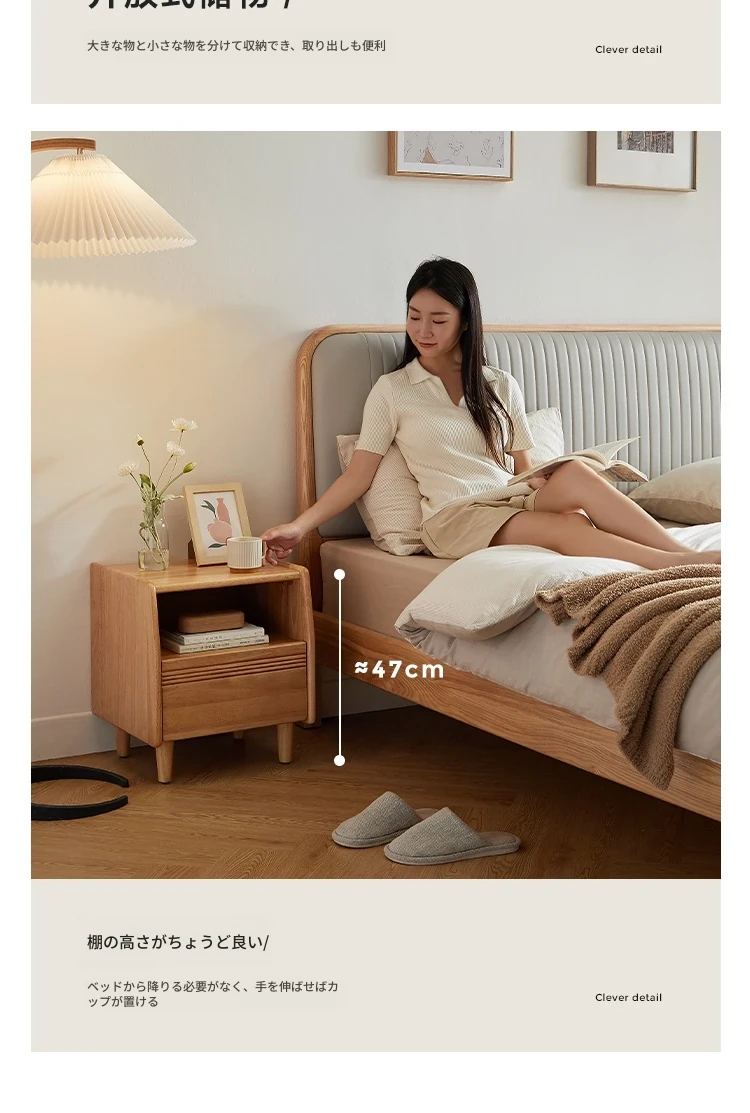 【スラットフレーム|ライトオーク色+カーボングレー】CS2A-Aベッドフレーム収納なし+CD319Aマットレス(厚さ:220mm)+CS2B-Aナイトスタンド*1