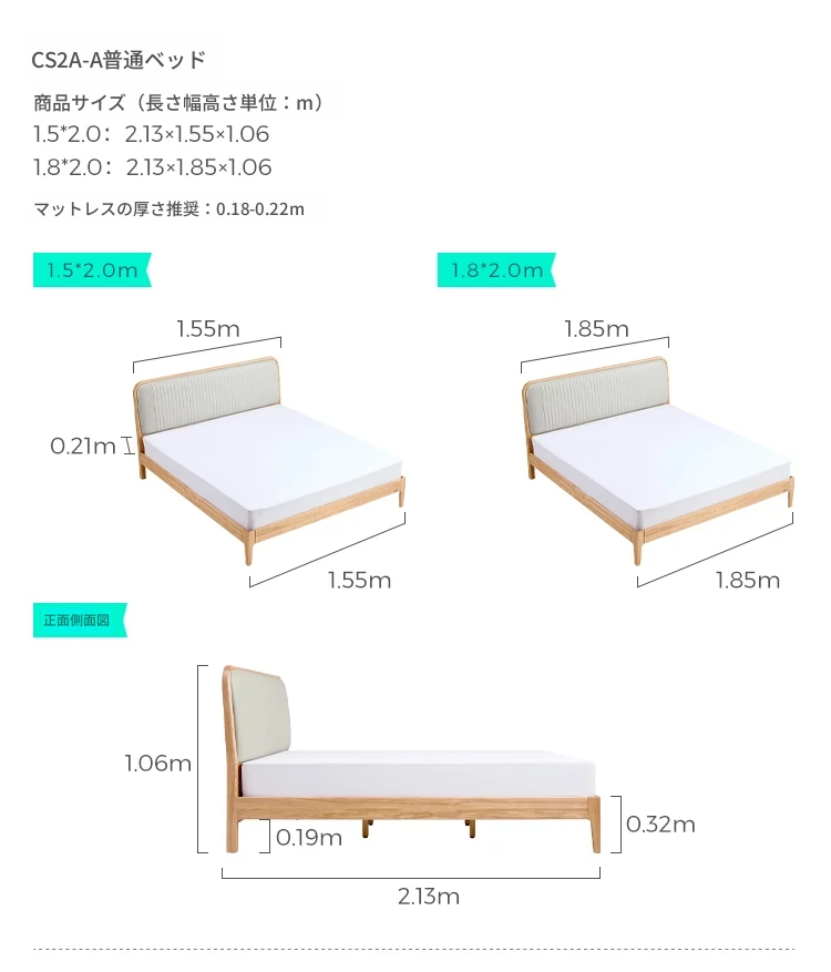 【スラットフレーム|ライトオーク色+カーボングレー】CS2A-Aベッドフレーム収納なし+CD319Aマットレス(厚さ:220mm)