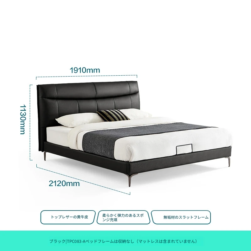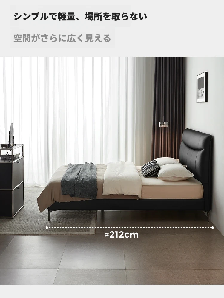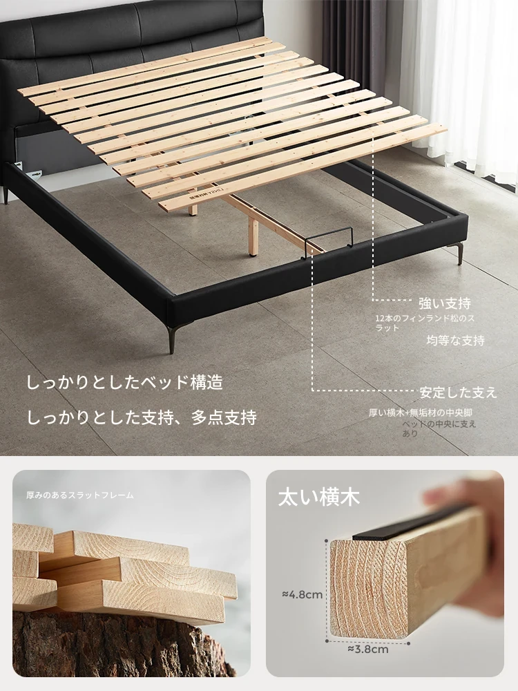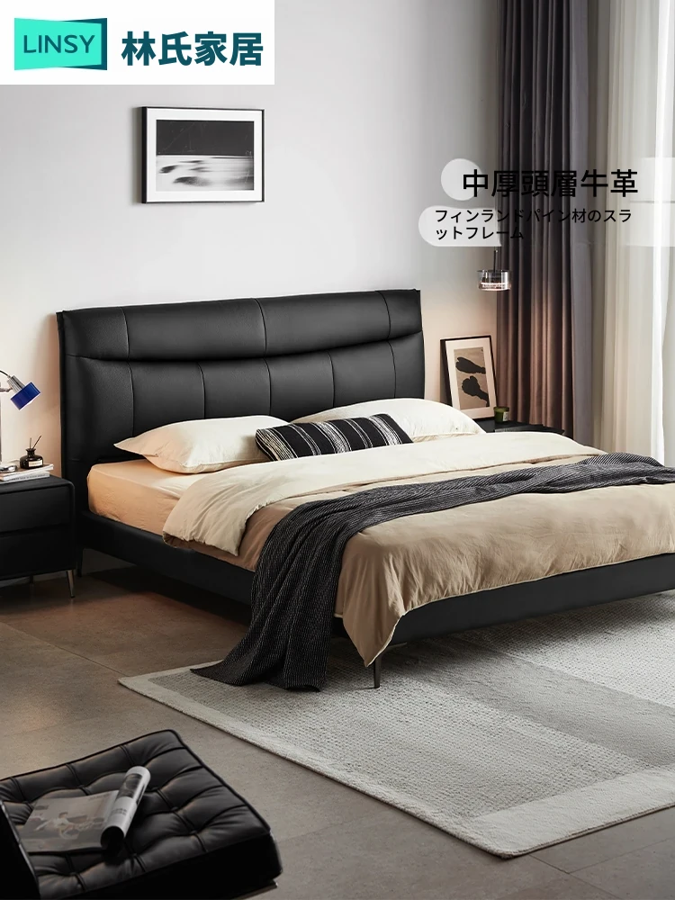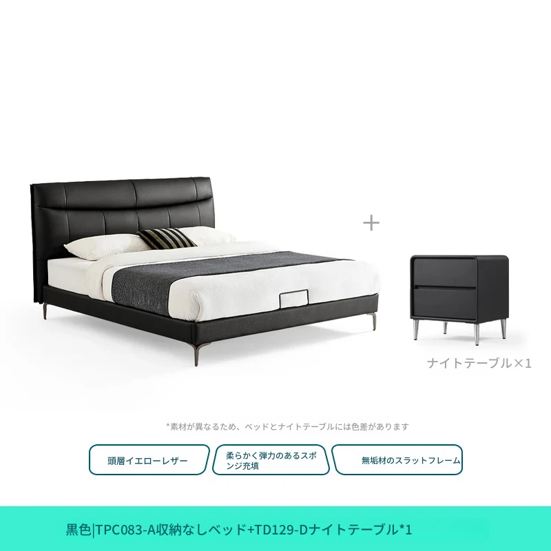 リンシー家具 高級感あふれるブラックレザー シンプルモダンなダブルベッド 主寝室用のスタイリッシュな家具 ウッド仕立て 【高品質なライフスタイルを提案】