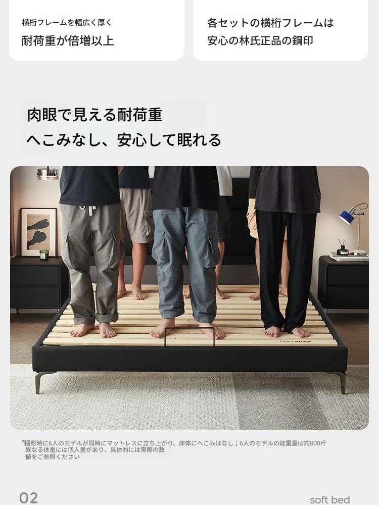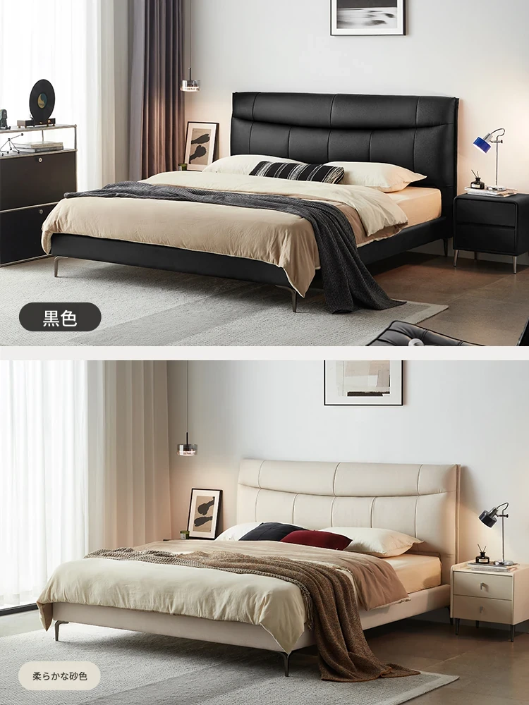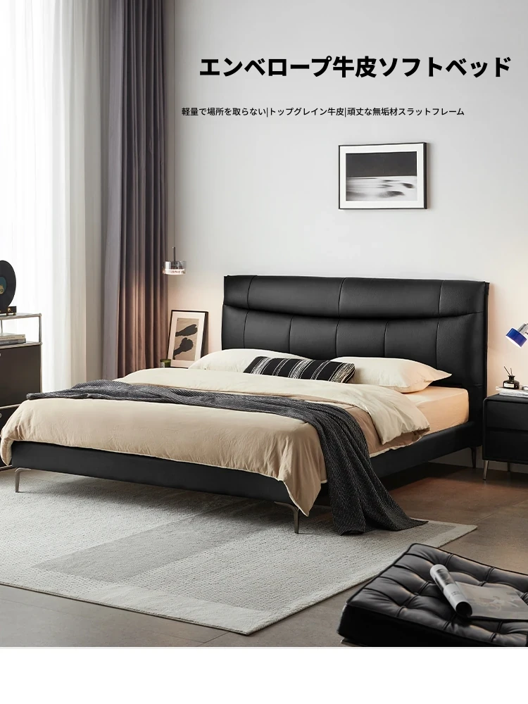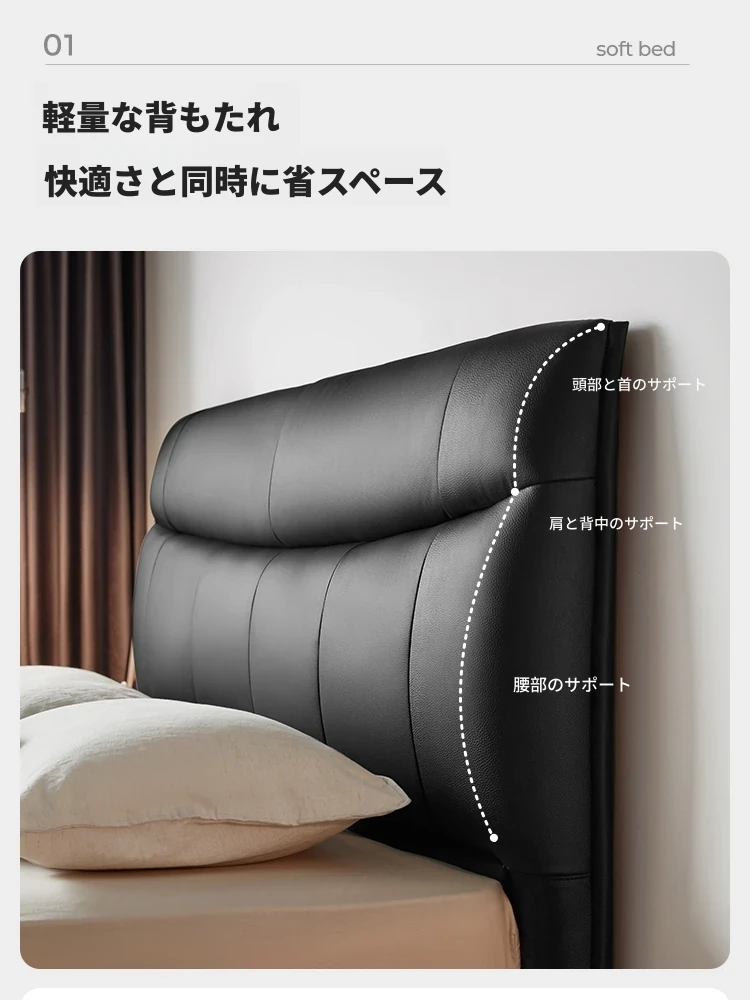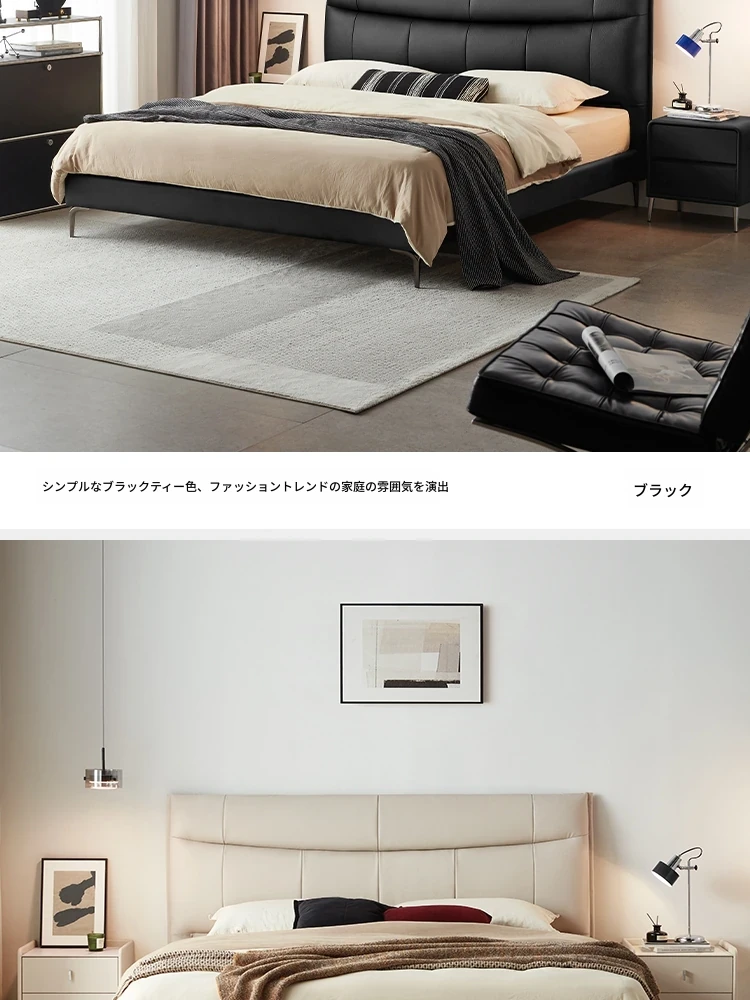 リンシー家具 高級感あふれるブラックレザー シンプルモダンなダブルベッド 主寝室用のスタイリッシュな家具 ウッド仕立て 【高品質なライフスタイルを提案】