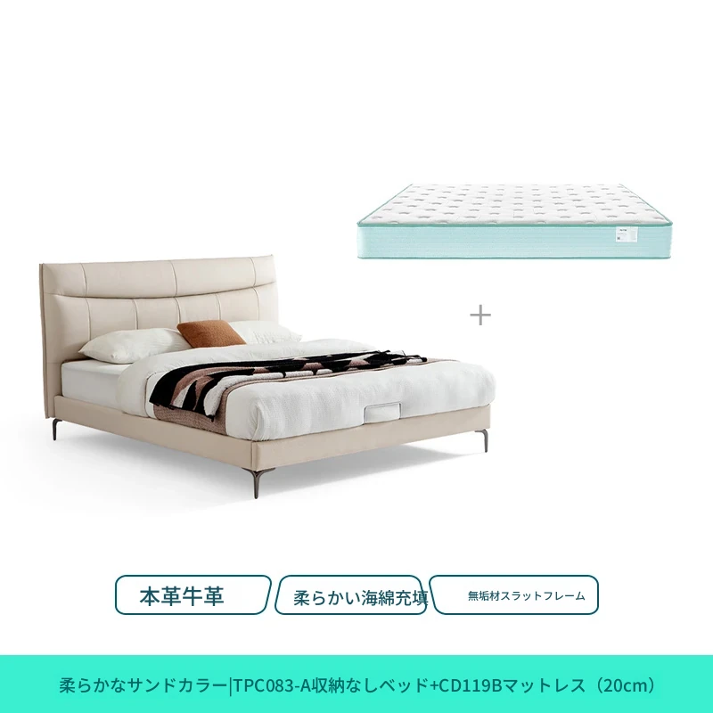 (2)【本革|ソフトサンド】シングルベッド+マットレス