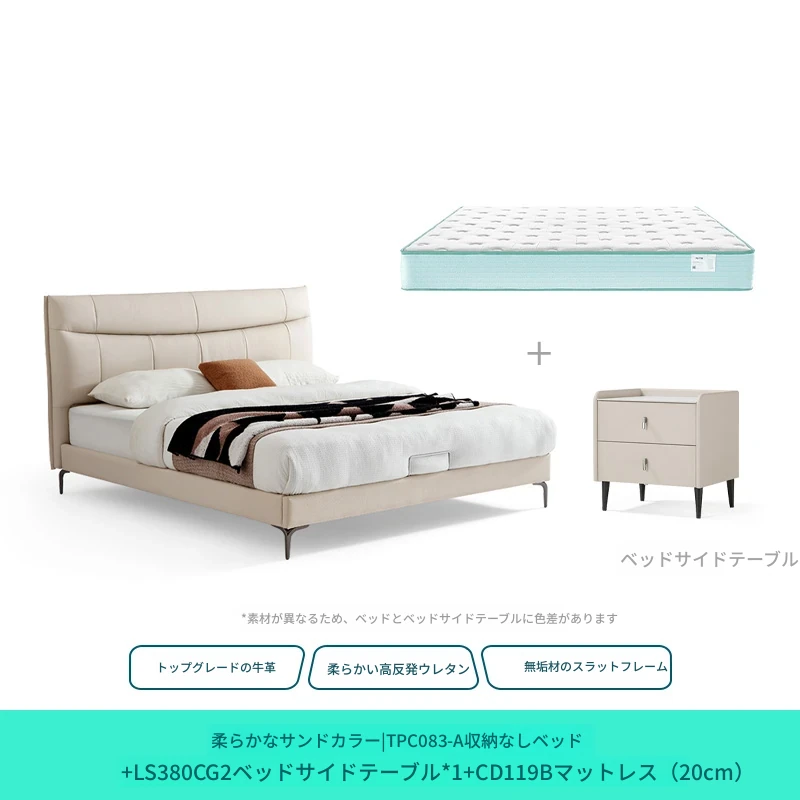 (3)【本革|ソフトサンド】シングルベッド+マットレス+ナイトテーブル