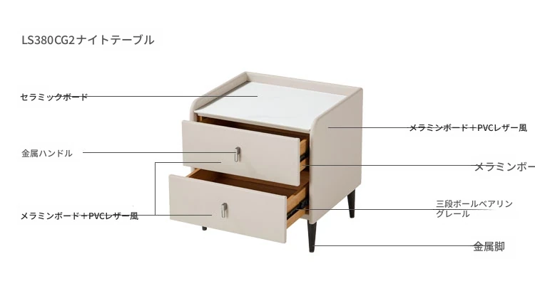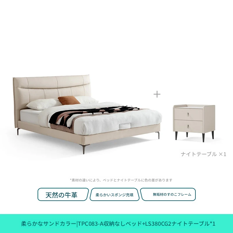 (4)【本革|ソフトサンド】シングルベッド+ナイトテーブル
