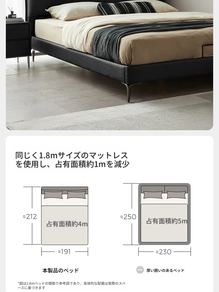 (5)【本革|ブラック】シングルベッド