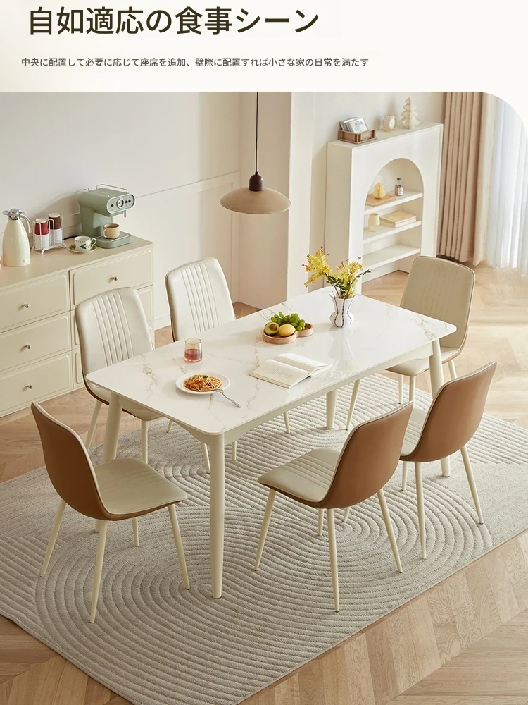 リンシー家居 フレンチクリーム風 岩板ダイニングテーブル 2024新作 長方形 おしゃれな食卓 天然木脚 リンシー木業の高品質家具で、特別なお食事を演出!