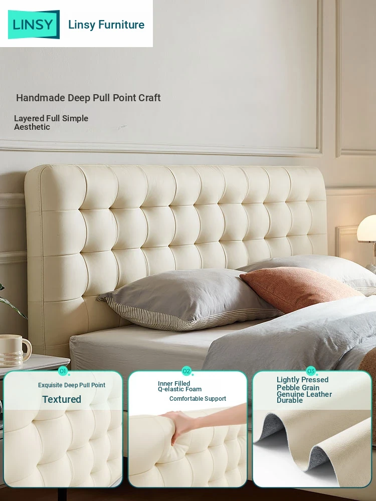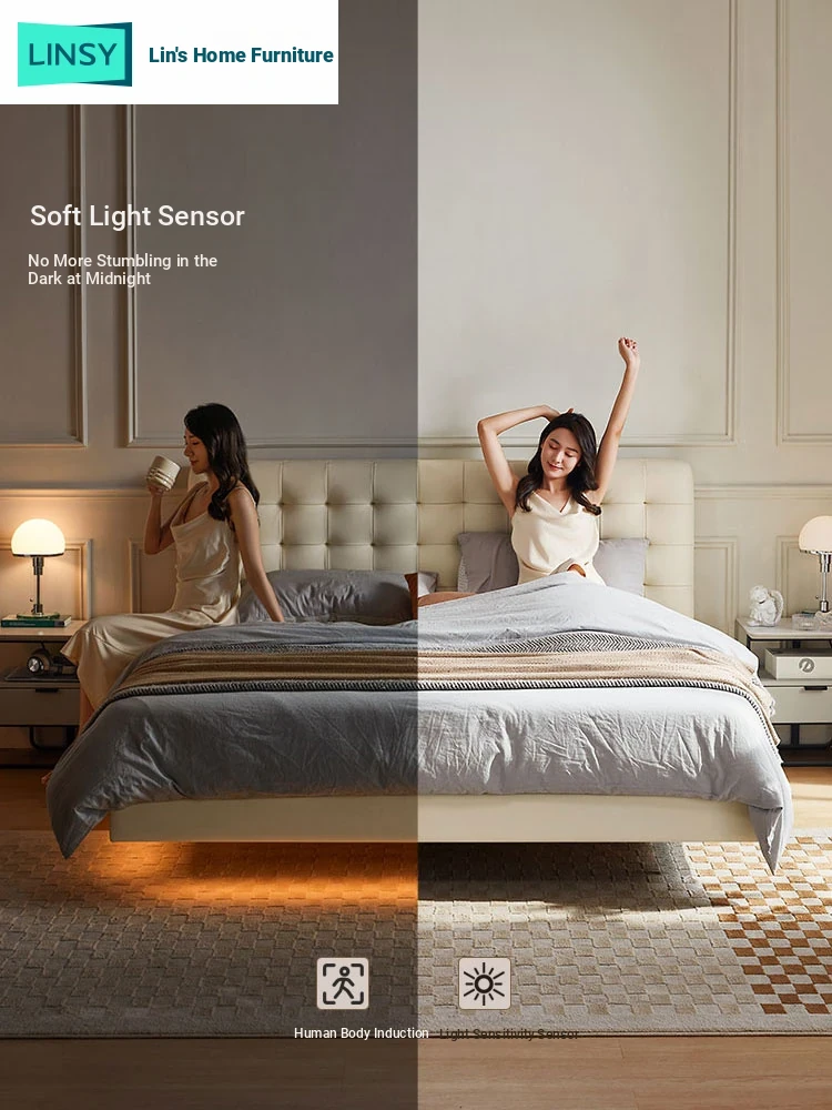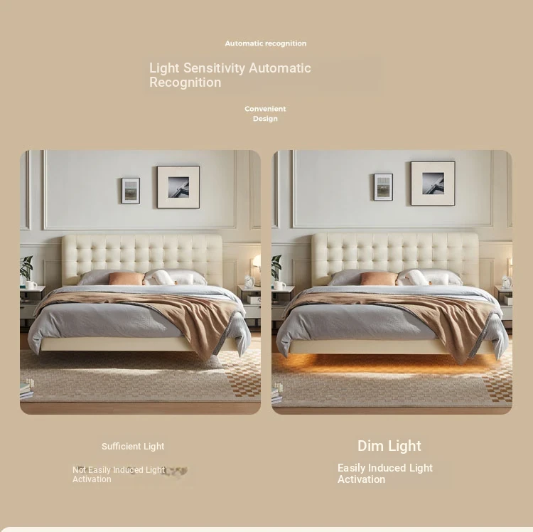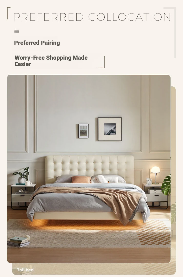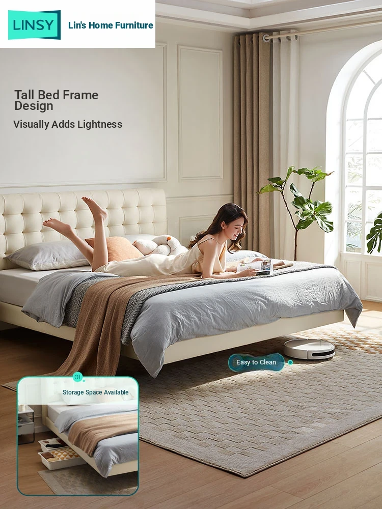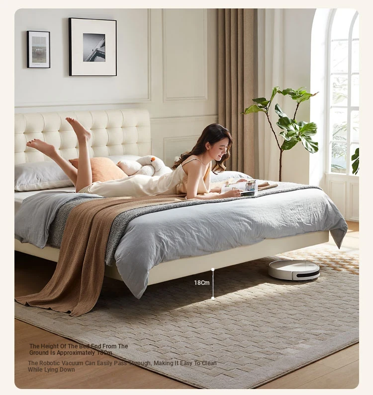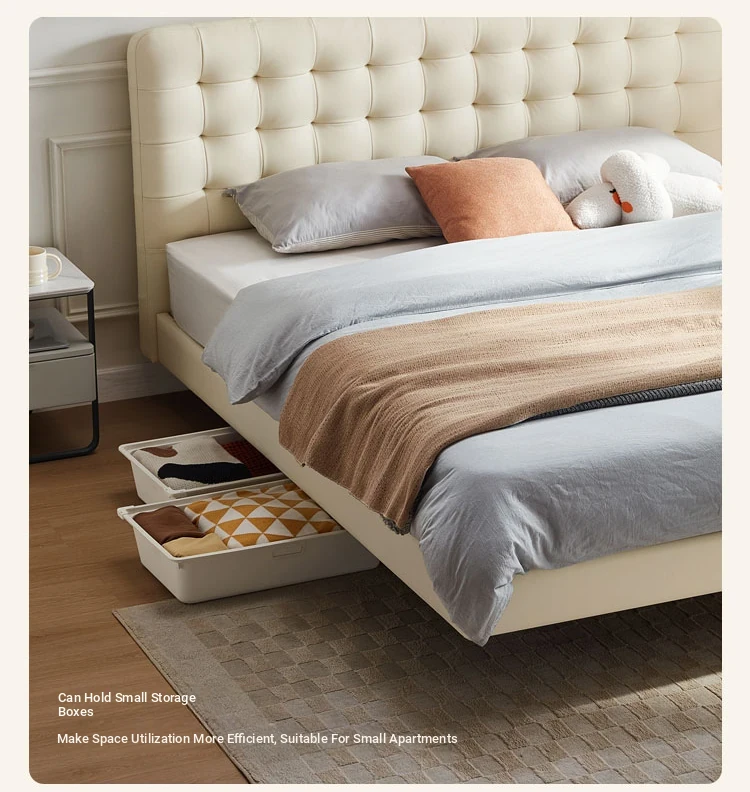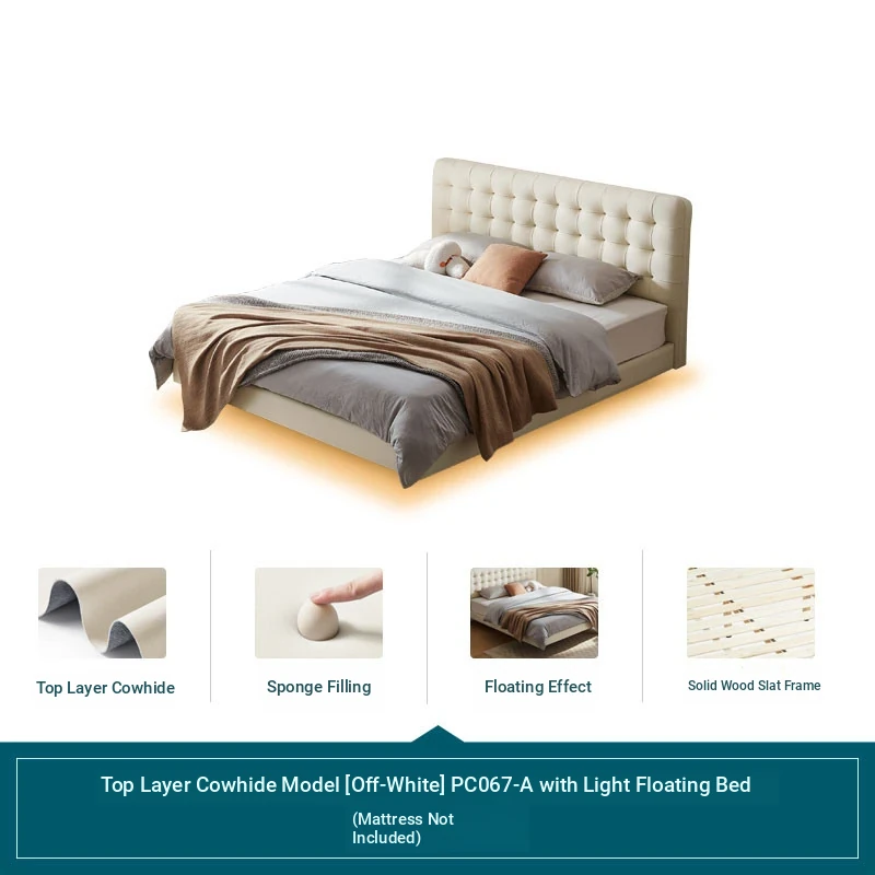 [Cattle Leather with Lamp Head Layer | Creamy-white] There is no storage bed at the bottom of the PC067-A bed