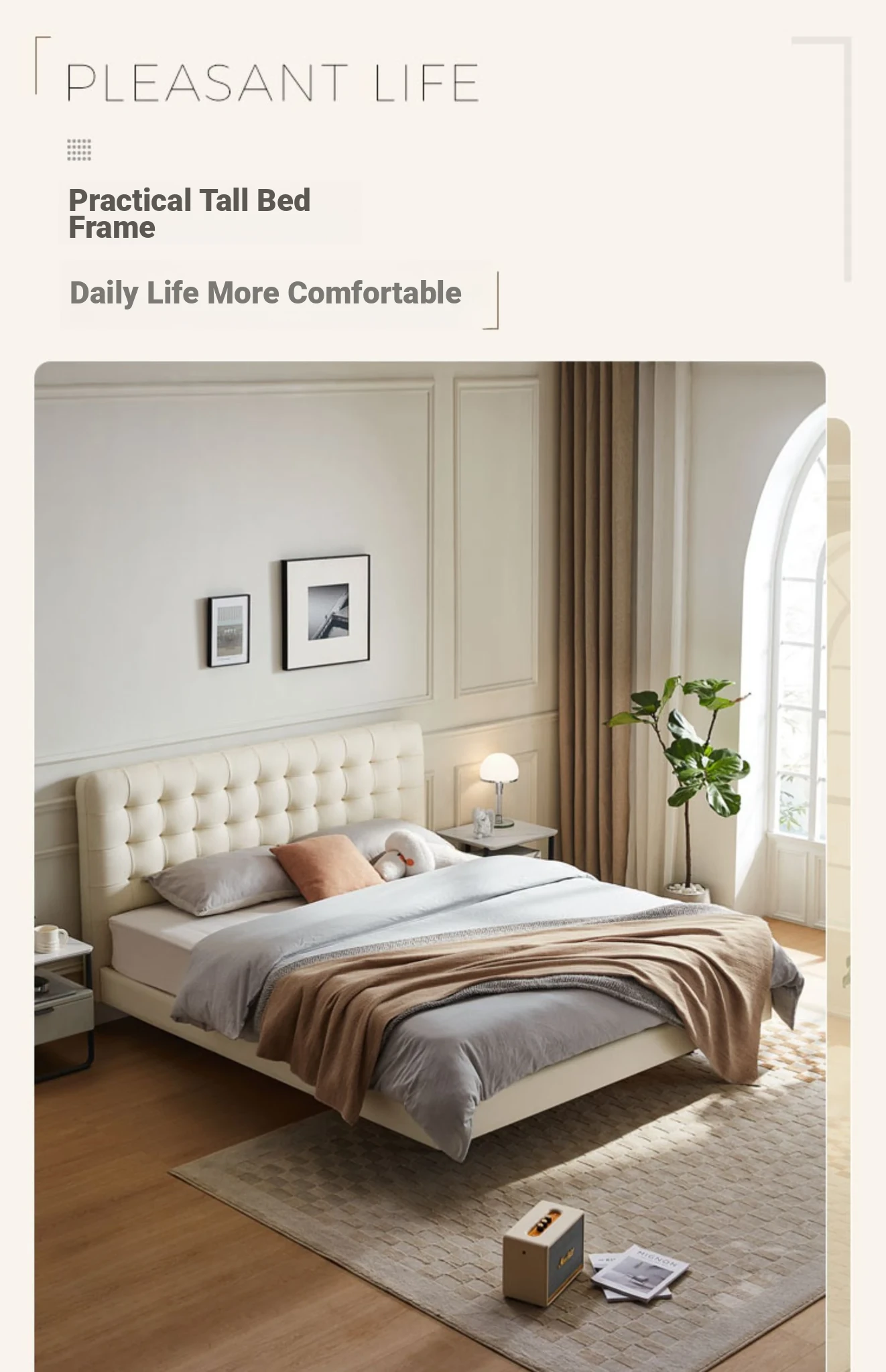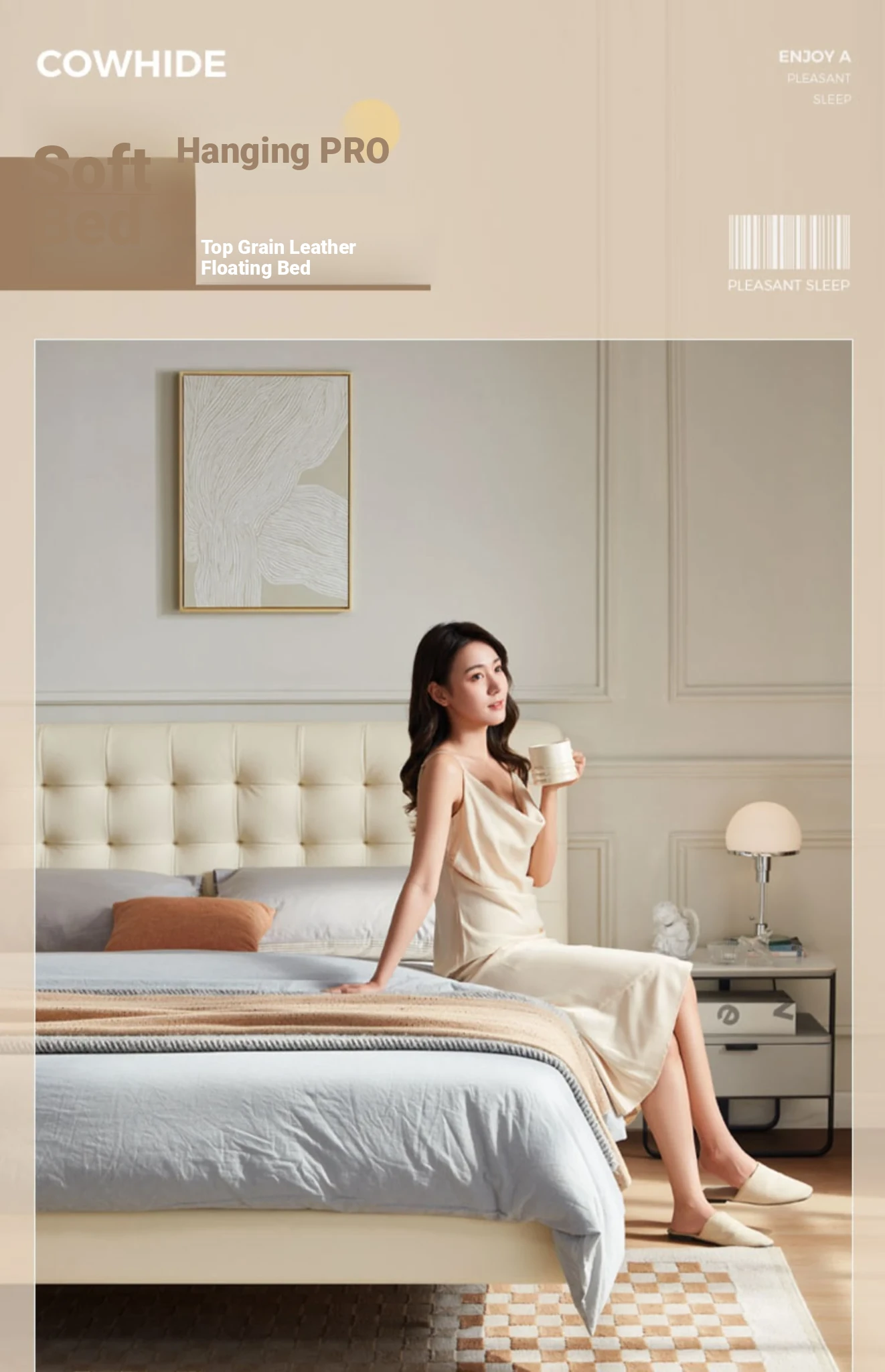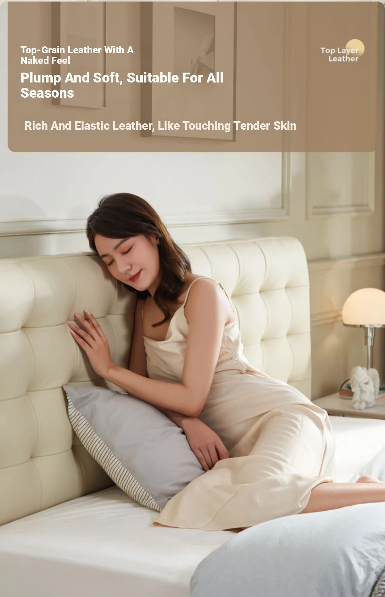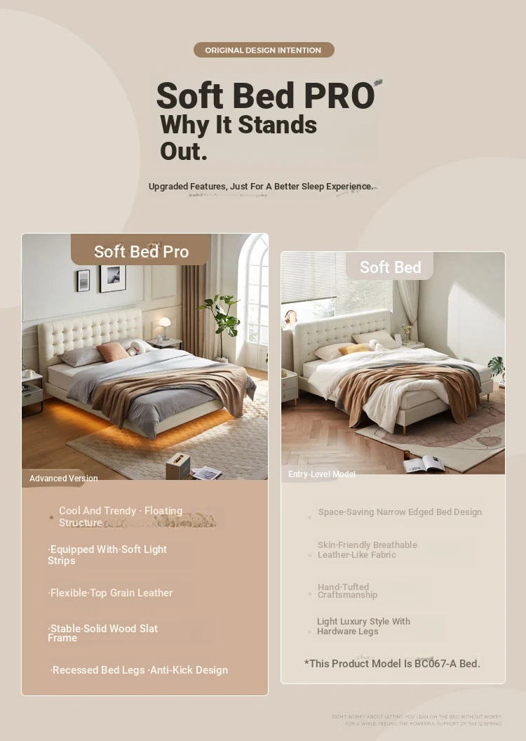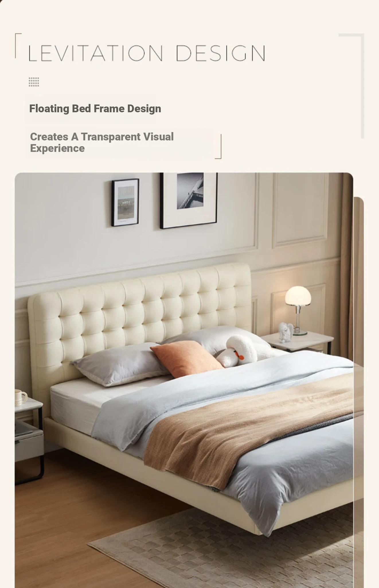 [Cattle Leather with Lamp Head Layer | Creamy-white] There is no storage bed at the bottom of the PC067-A bed