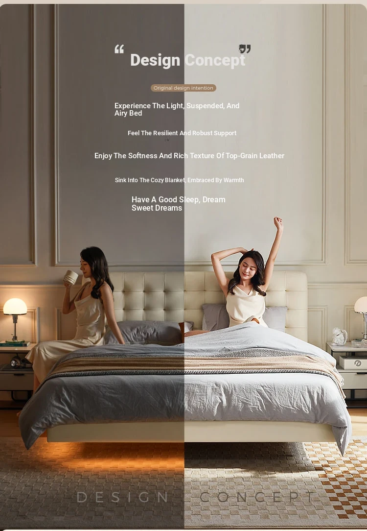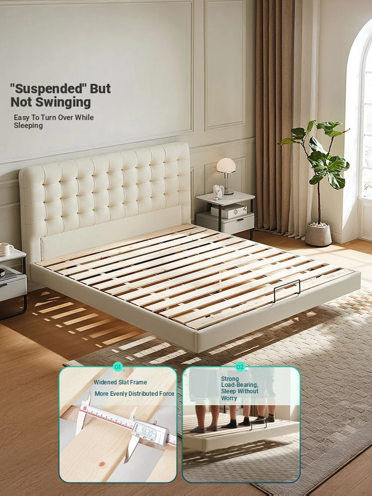 Linsy Home Italian Top-Grain Leather Floating Bed – Trendy Anti-Gravity Design for Modern Bedrooms, Perfect for Instagram Lovers (Model: PC067)