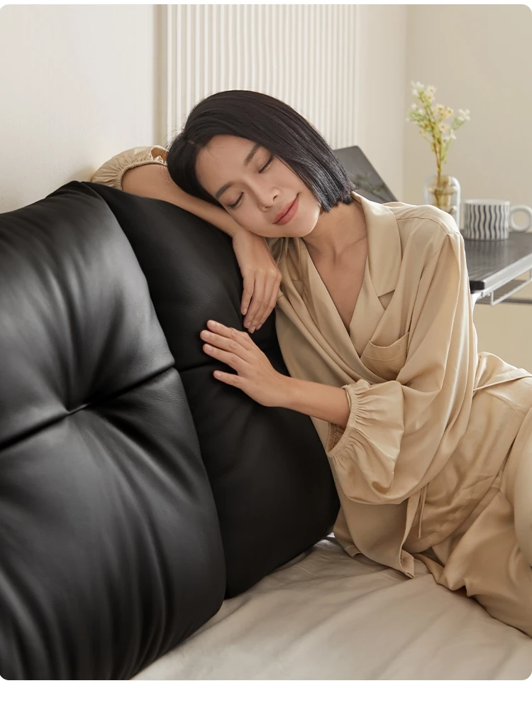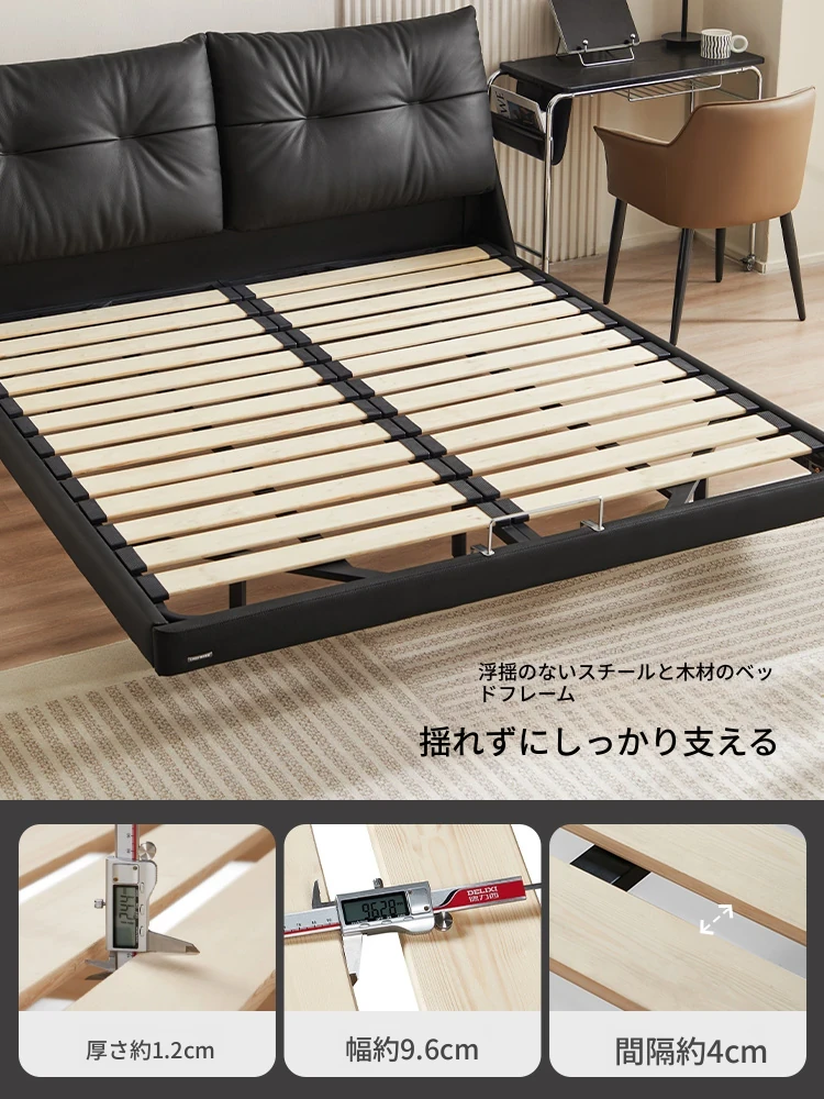 リンシホームのサスペンデッドレザー製ベッド、ラグジュアリーなデザインで主寝室に最適!高級感あふれるダブルベッドで、カップルのプライバシーを守ります。モデル名:TPC705。