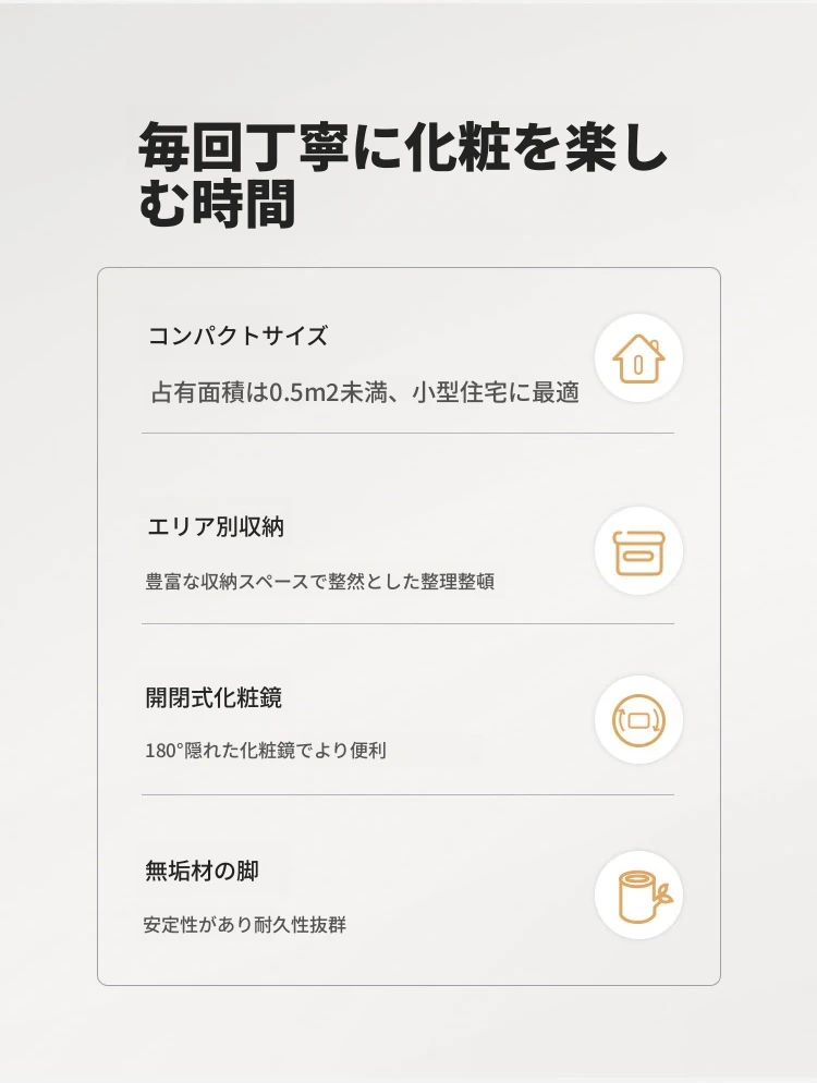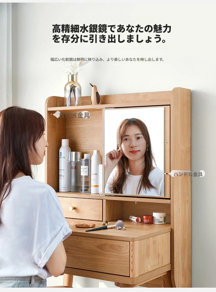 リン氏家具 モダンミニマリスト スタイリッシュな小型ドレッサー ベッドルーム用 省スペースなメイクアップテーブル 天然木の脚付き収納キャビネット おしゃれで機能的なデザイン!