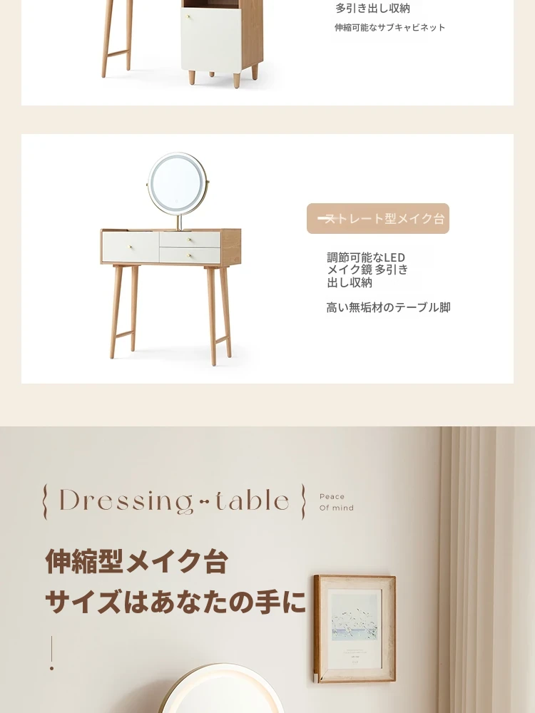 林氏家居の天然木風エクステンション式メイクアップデスク - シンプルでスタイリッシュなデザイン、収納力抜群!お部屋をおしゃれに彩るあなたのための理想的なアイテムです。