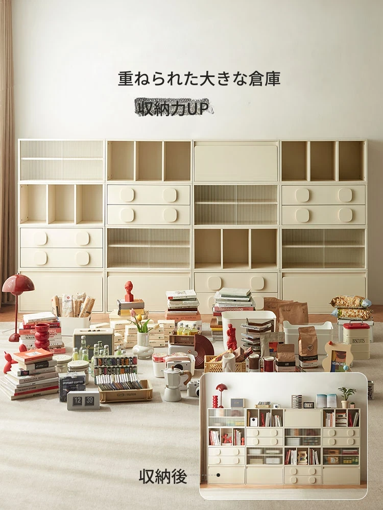 林氏家具・自由に組み合わせ可能な格子キャビネット・ローボード・シェルフ・収納キャビネット・一体型窓辺ディスプレイ、スタイリッシュで機能的な空間を実現!