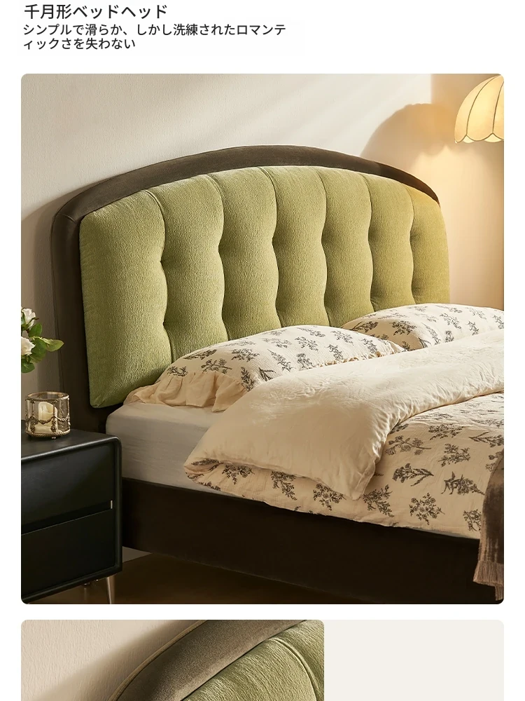 林氏家具 中古風 ファブリック ボックススプリング ダブル ベッド ヴィンテージ フレンチ スタイル ソフト パッケージ 寝室用家具 - 高級感あふれる魅力的なデザイン!