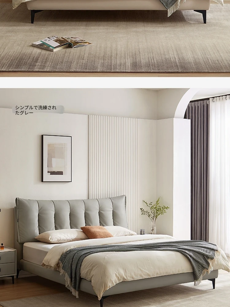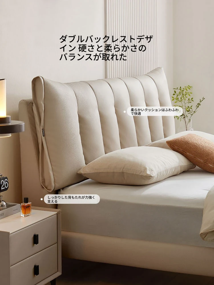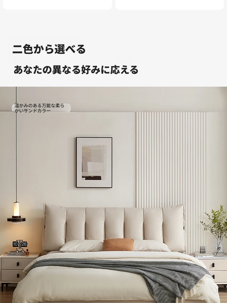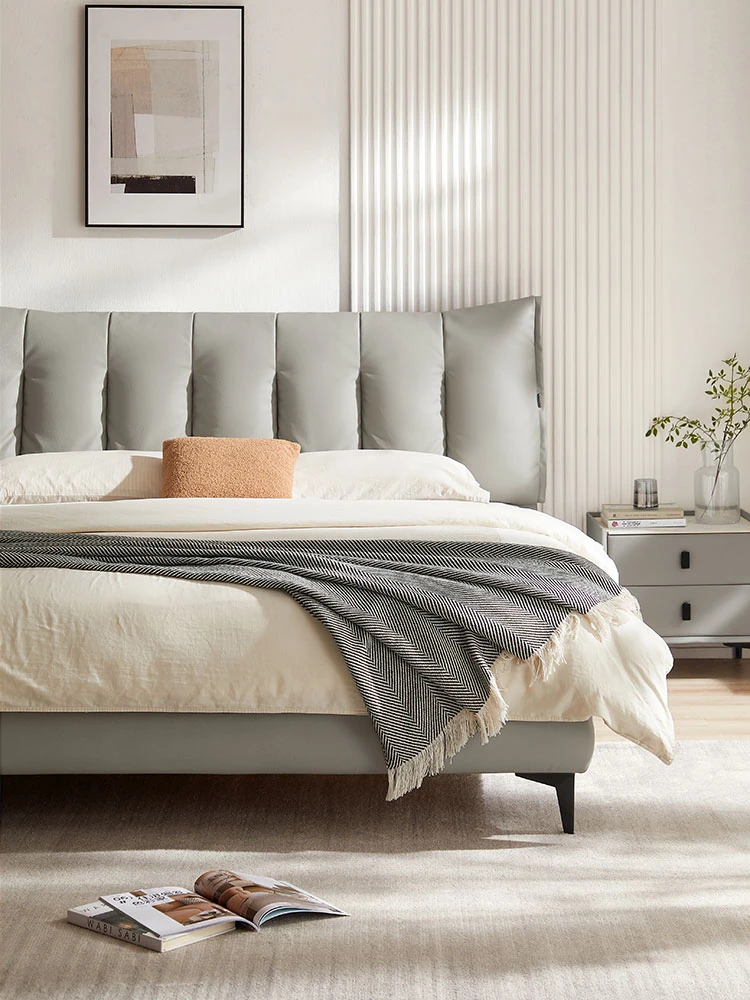 林氏家居のモダンシンプルな主寝室用ダブルベッド - 高品質なトップレザーソフトパッド付き!快適な寝心地で、あなたの生活空間をスタイリッシュに演出します。仏山の信頼できる家具メーカー、林氏木業の逸品!