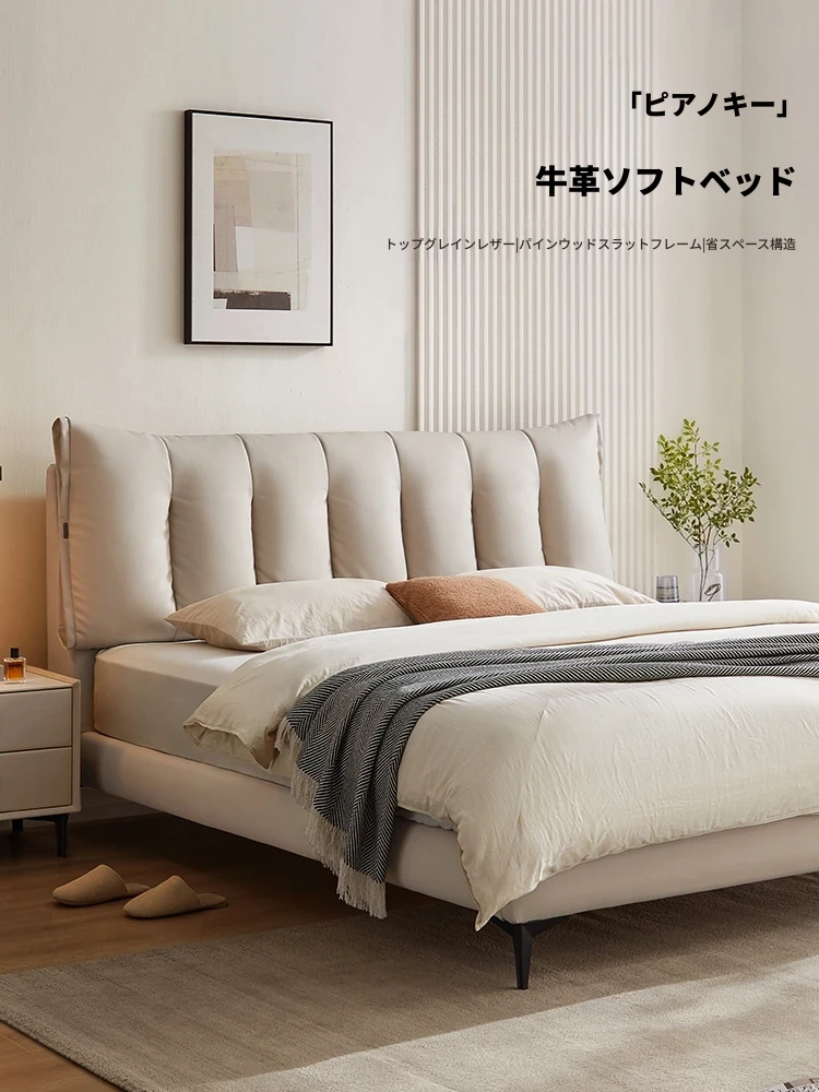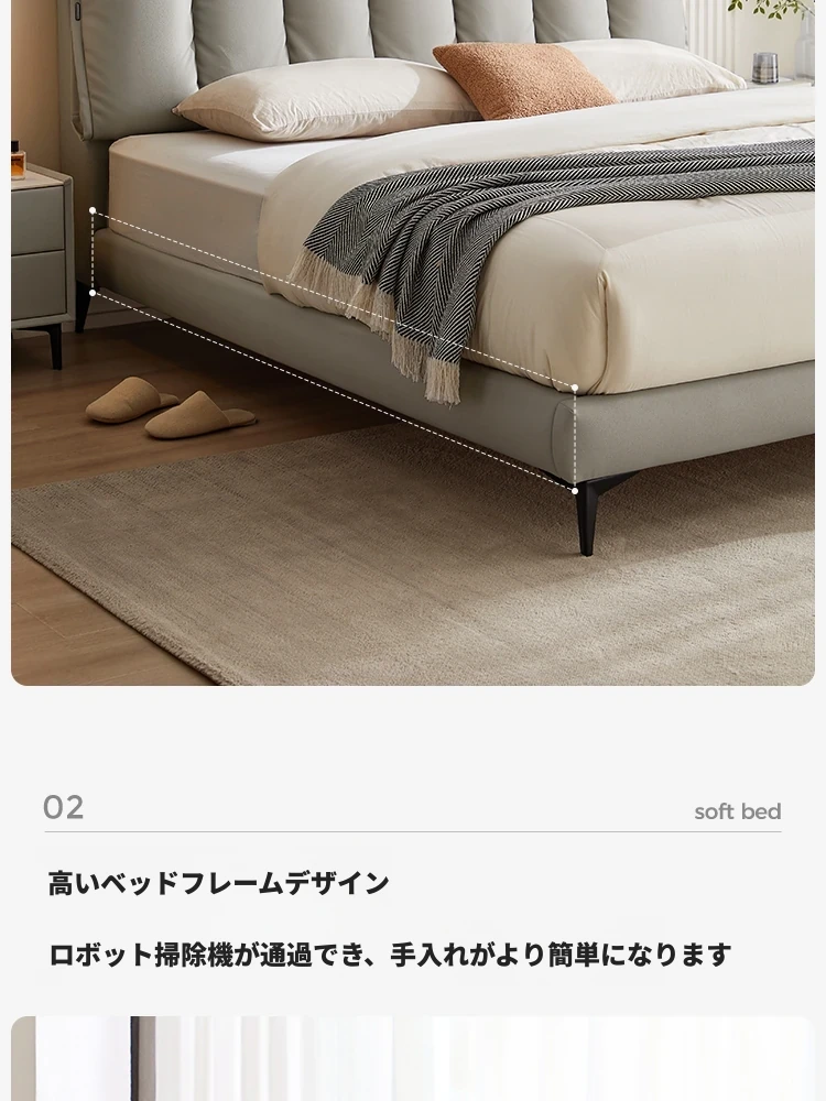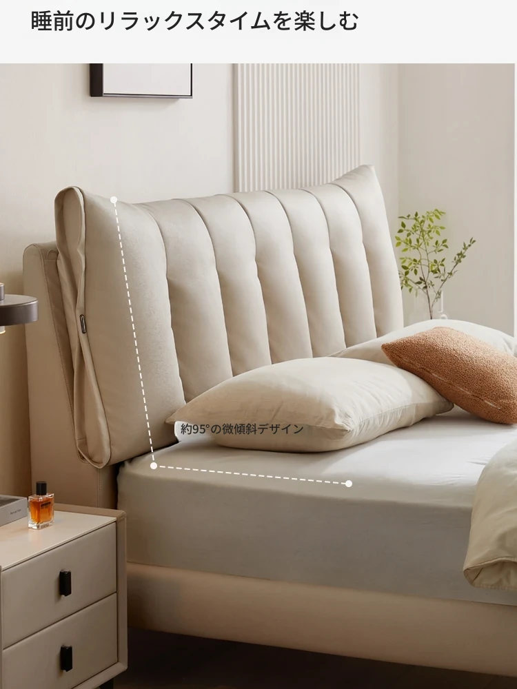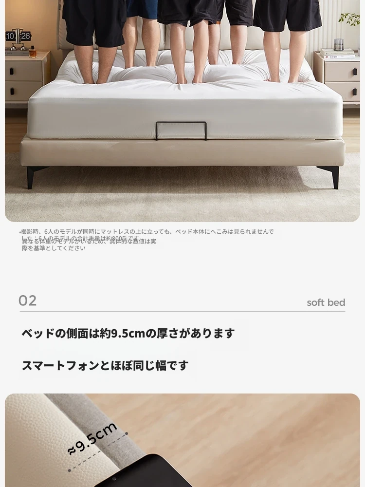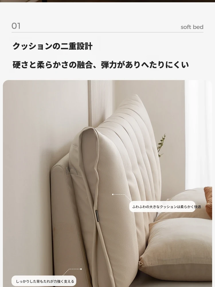 林氏家居のモダンシンプルな主寝室用ダブルベッド - 高品質なトップレザーソフトパッド付き!快適な寝心地で、あなたの生活空間をスタイリッシュに演出します。仏山の信頼できる家具メーカー、林氏木業の逸品!
