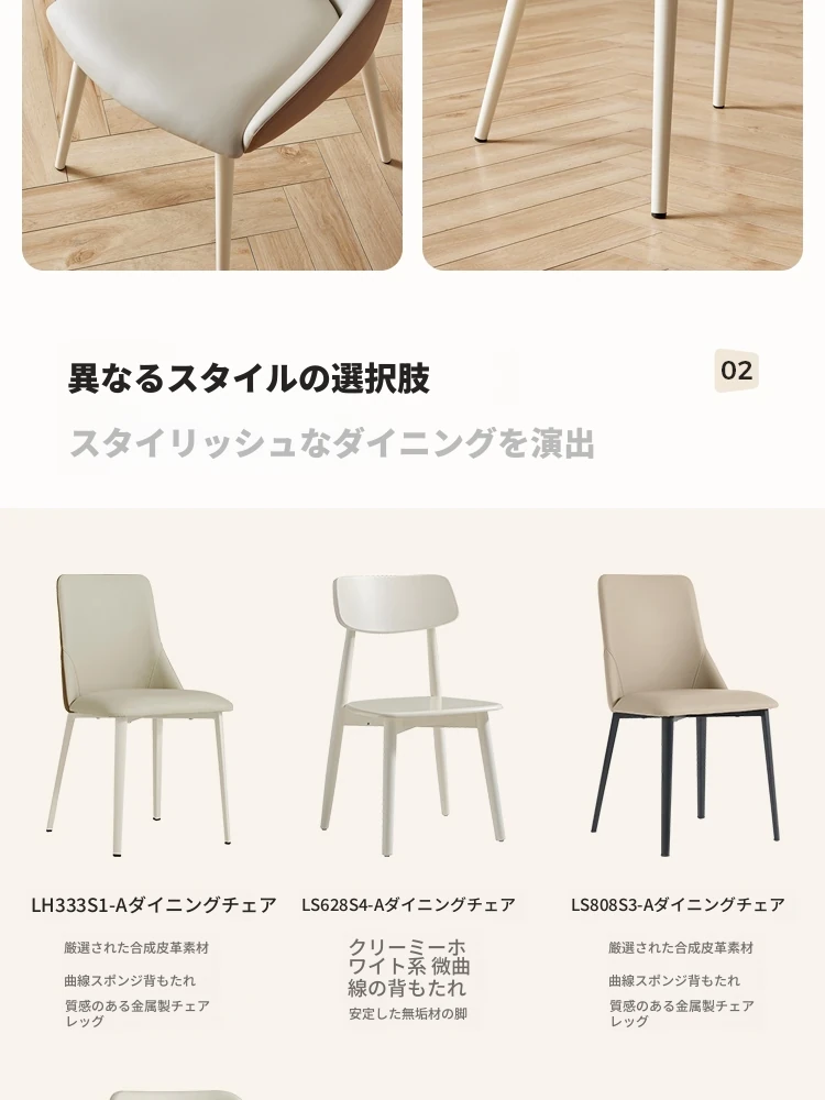 (8)【1卓6椅子|1.4メートル】クリーム色の天板のダイニングテーブル+ダイニングチェア630S2