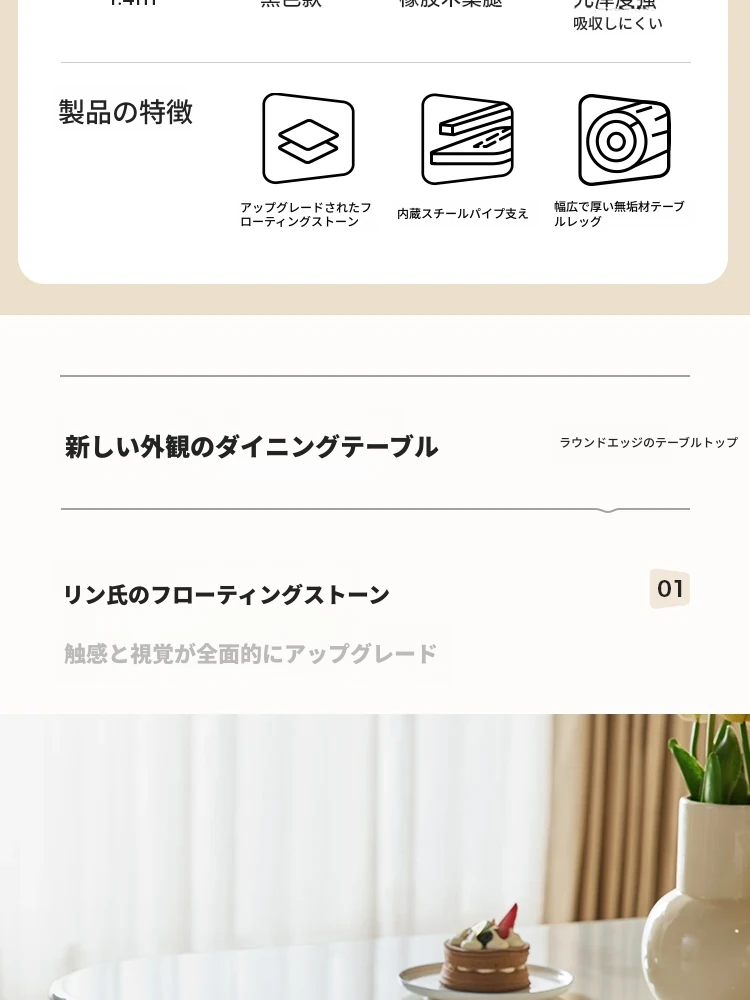 (2)【単卓|1.6メートル】クリーム色の天板のダイニングテーブル