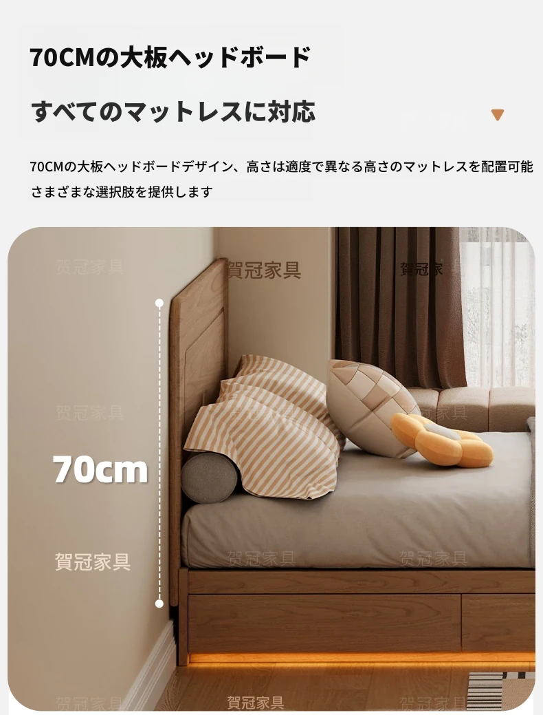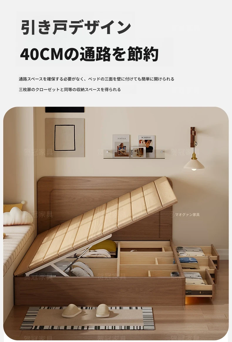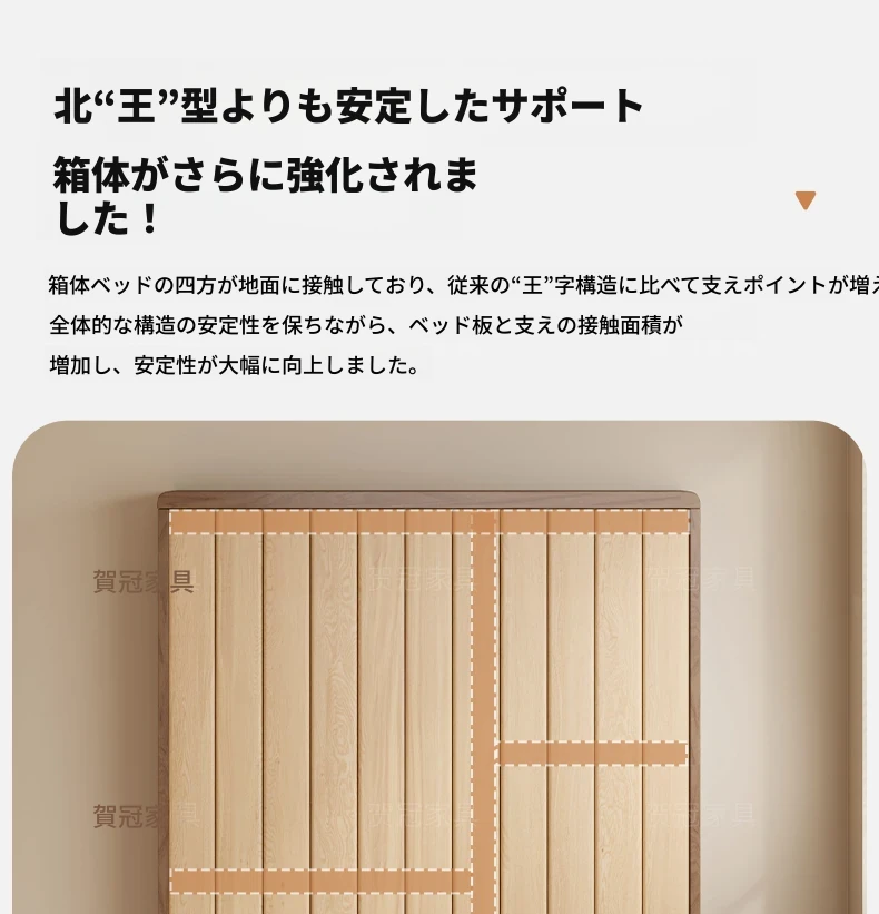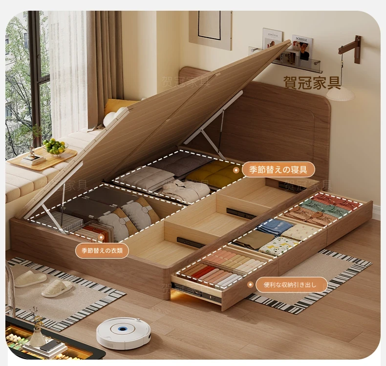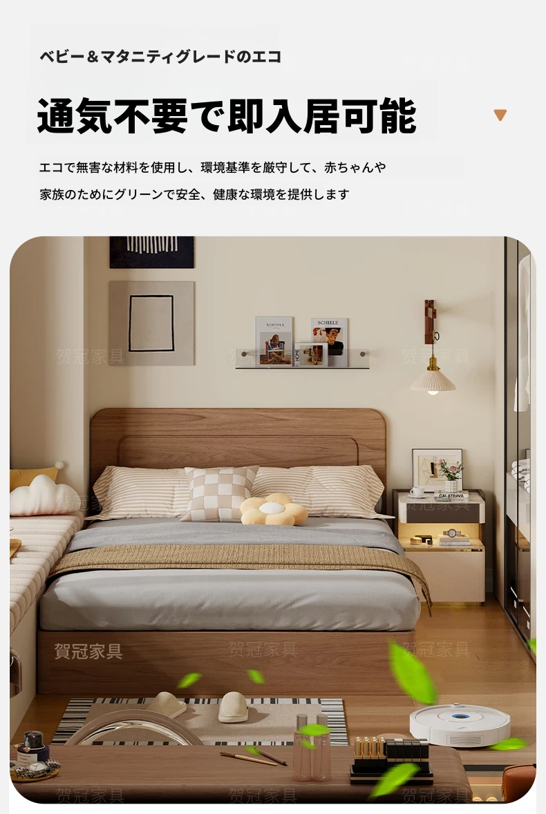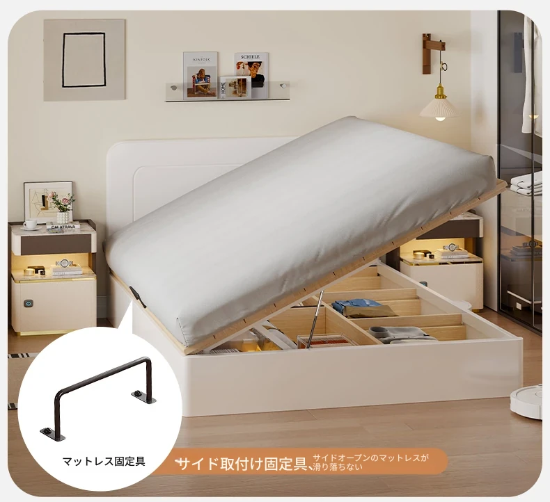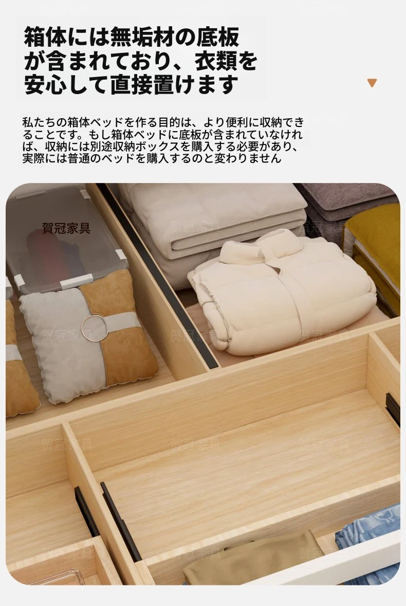 幅180cm×長200cmの収納付きダブルベッド・マットレス付|主寝室に最適!高箱設計で収納力抜群、快適な眠りを提供します。シンプルでスタイリッシュなデザインで、お部屋を華やかに演出。