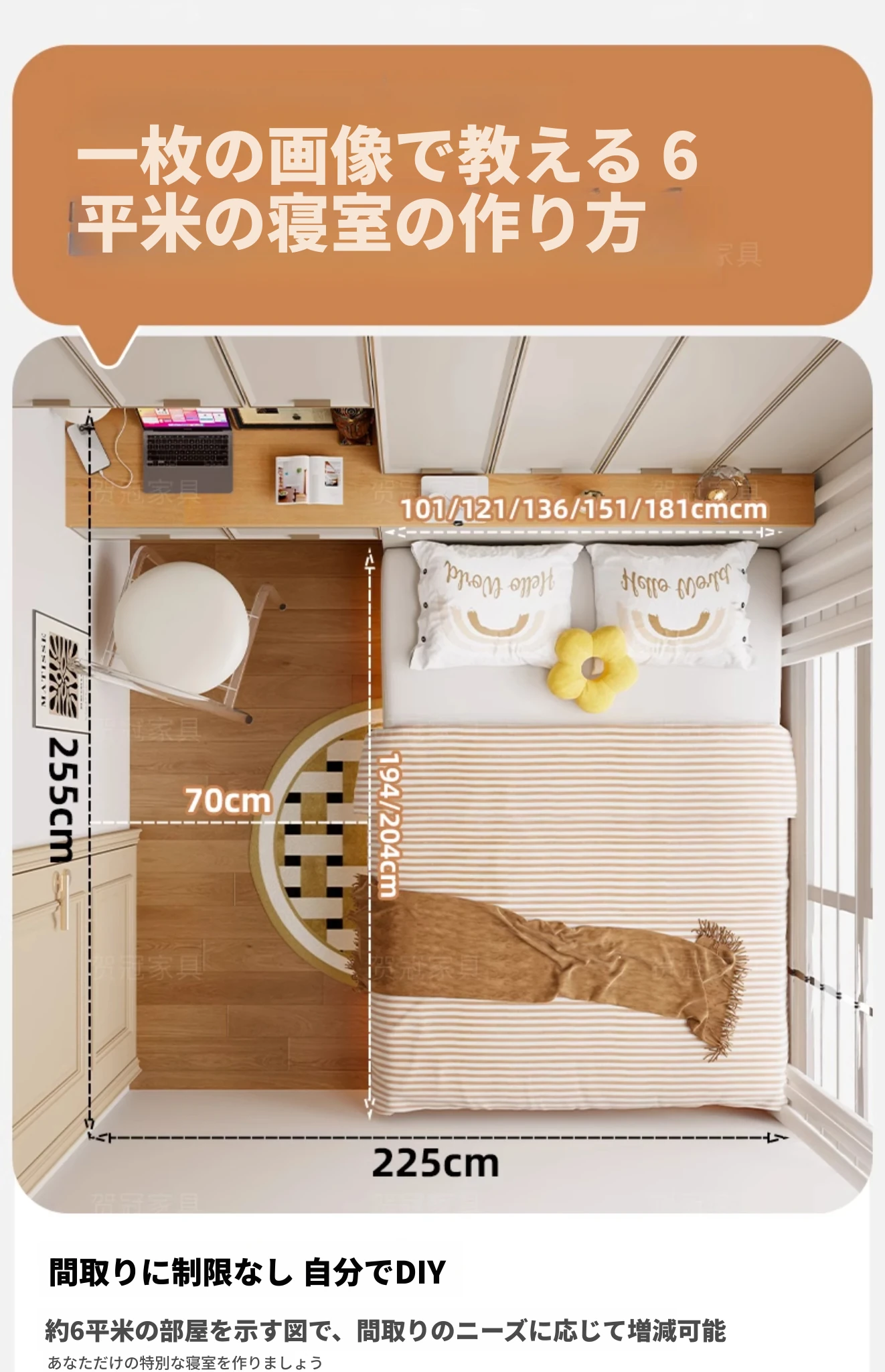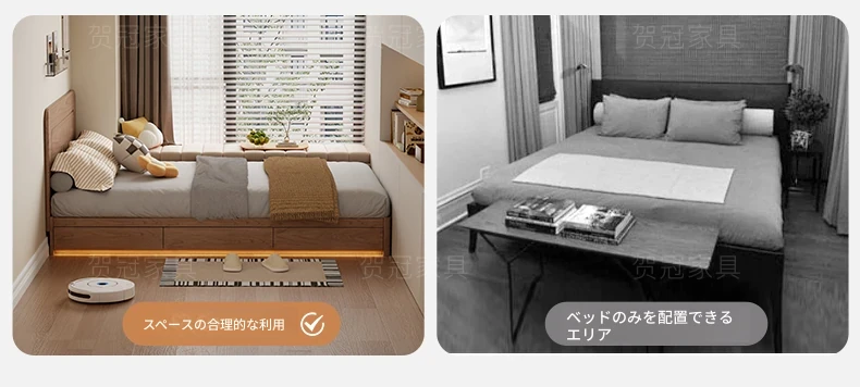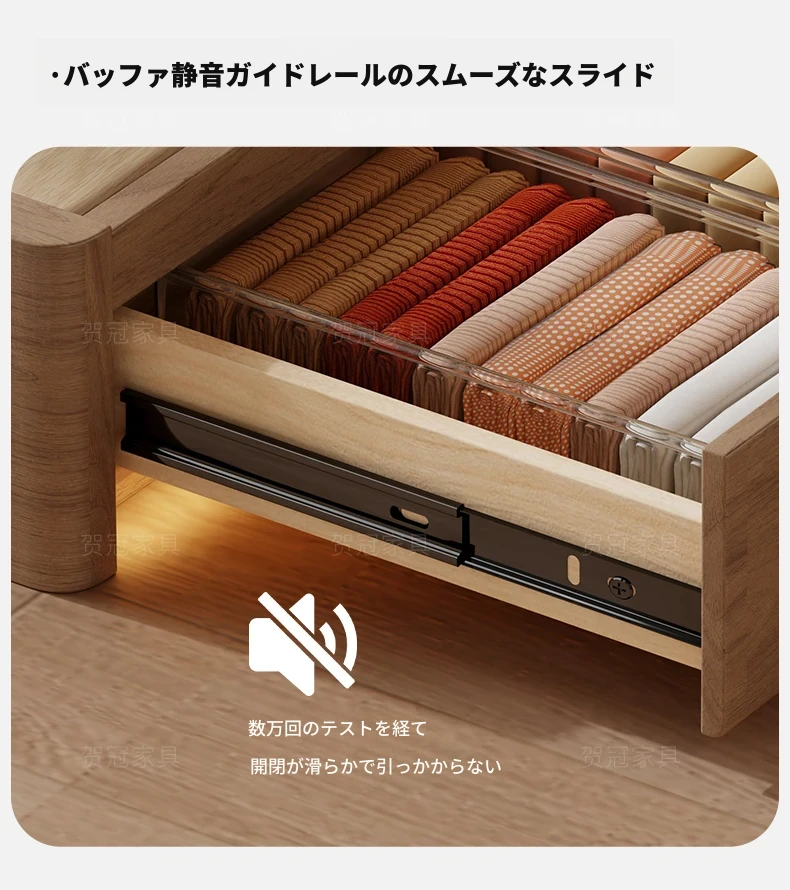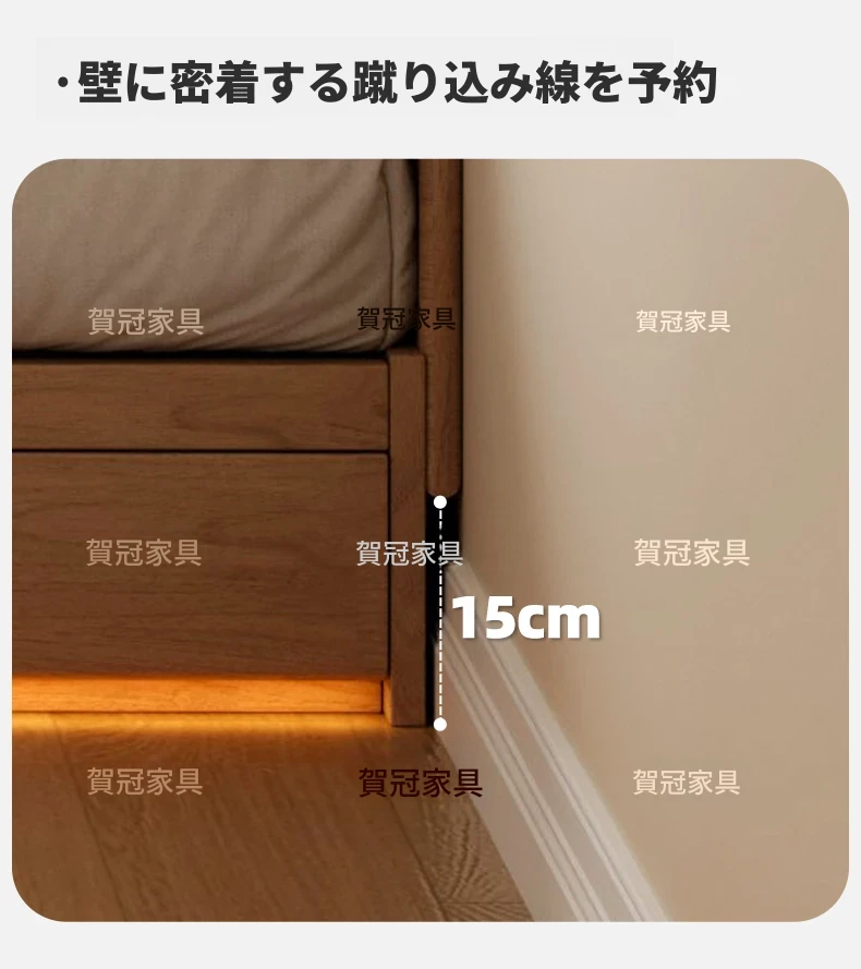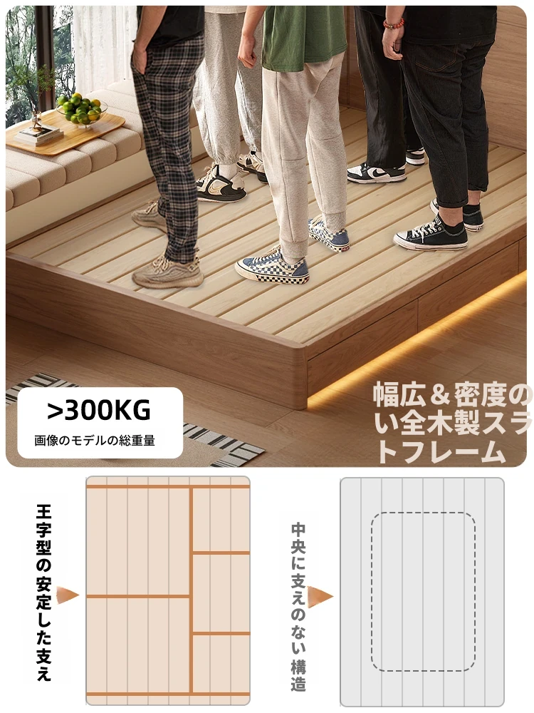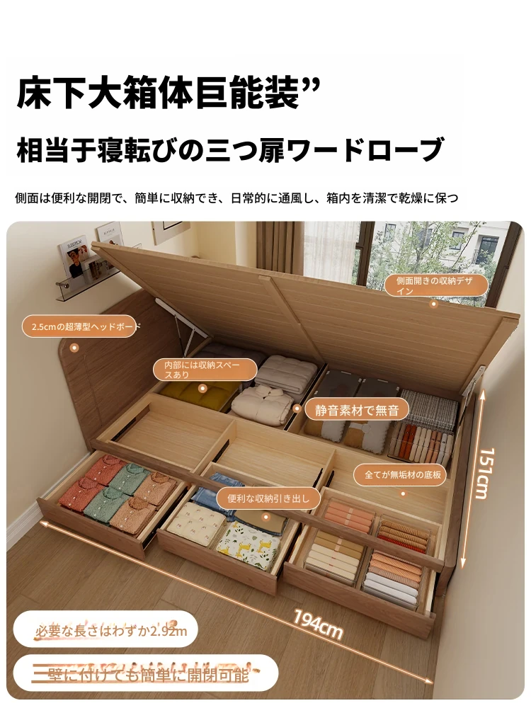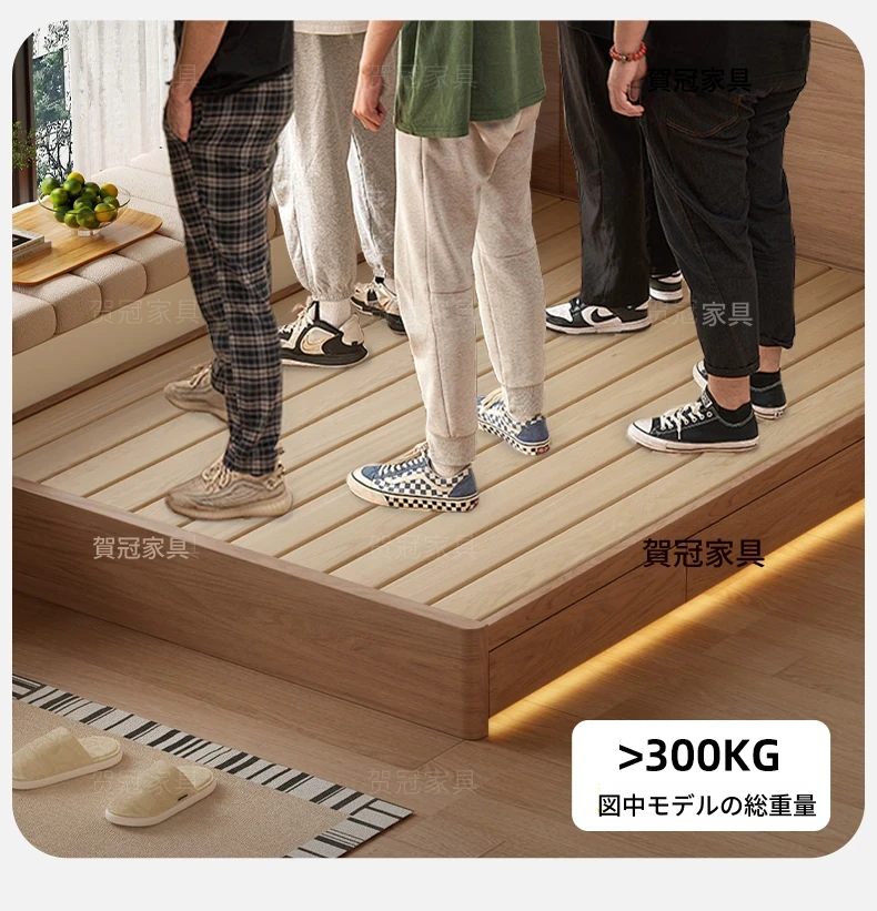 幅180cm×長200cmの収納付きダブルベッド・マットレス付|主寝室に最適!高箱設計で収納力抜群、快適な眠りを提供します。シンプルでスタイリッシュなデザインで、お部屋を華やかに演出。