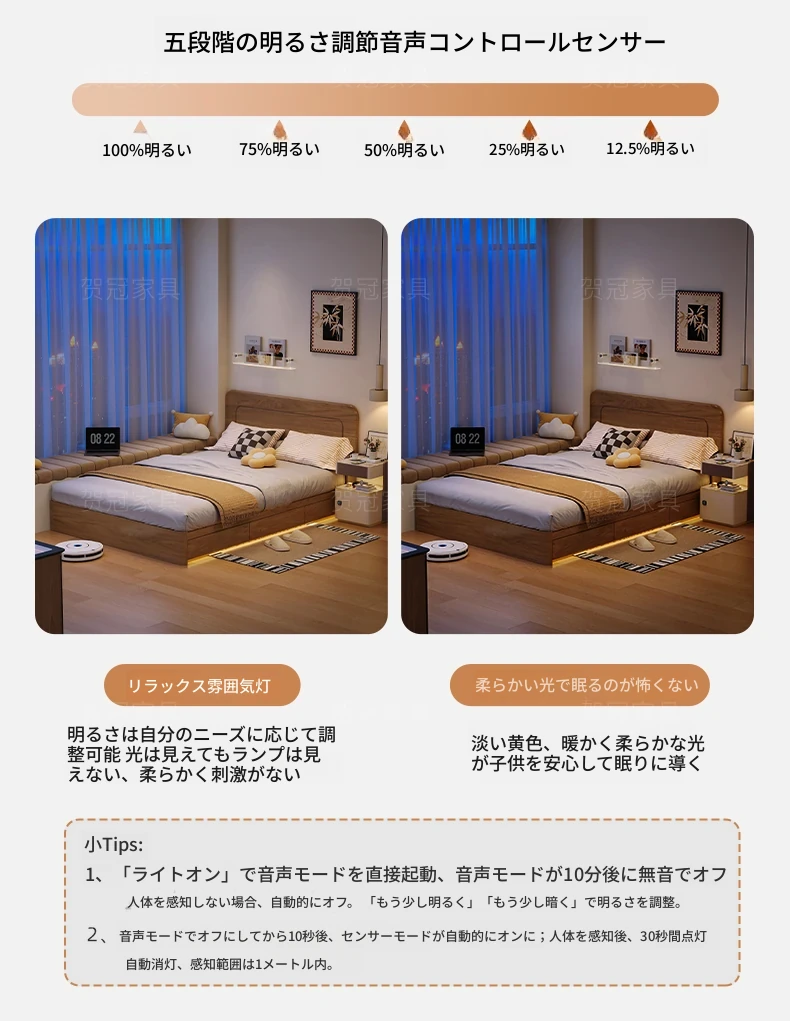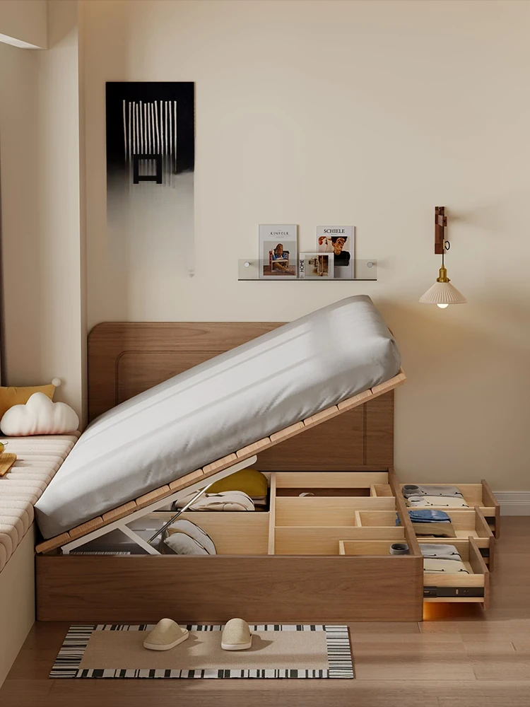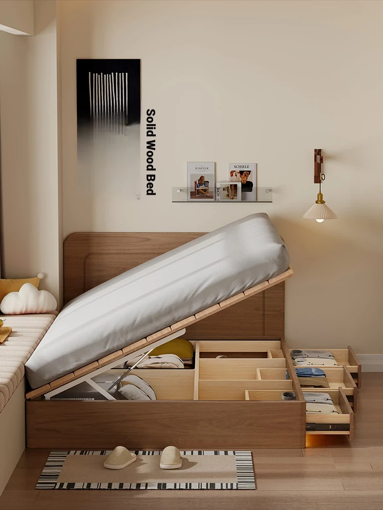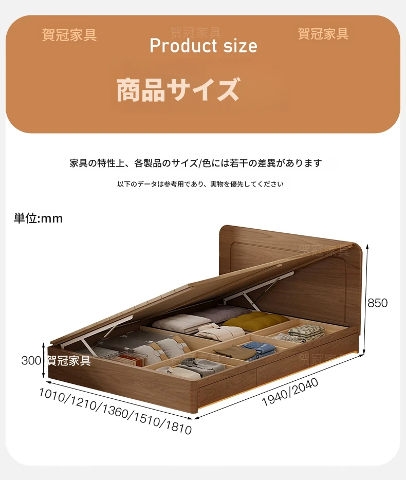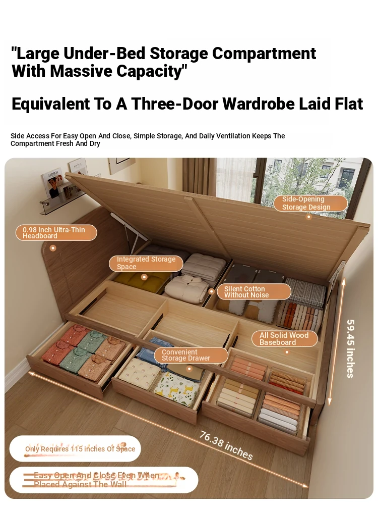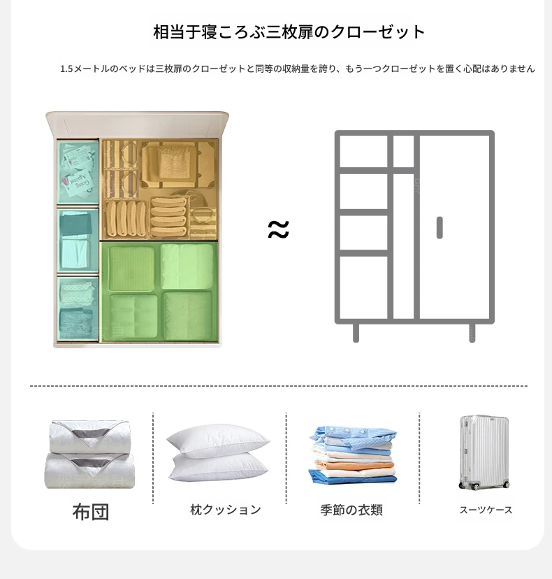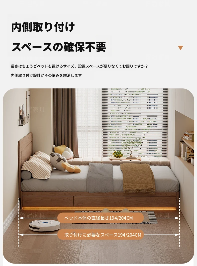 幅180cm×長200cmの収納付きダブルベッド・マットレス付|主寝室に最適!高箱設計で収納力抜群、快適な眠りを提供します。シンプルでスタイリッシュなデザインで、お部屋を華やかに演出。