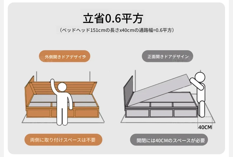 【クリーム色】ヘッドレスタイプ - ガス圧式サイドオープン収納ベッド + 3Eココナッツマットレス10cm