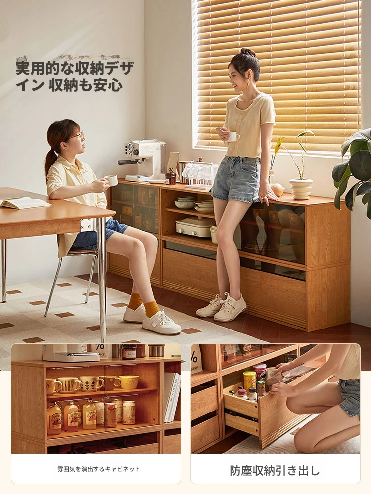 林氏家具・自由に組み合わせ可能な格子キャビネット・ローボード・シェルフ・収納キャビネット・一体型窓辺ディスプレイ、スタイリッシュで機能的な空間を実現!