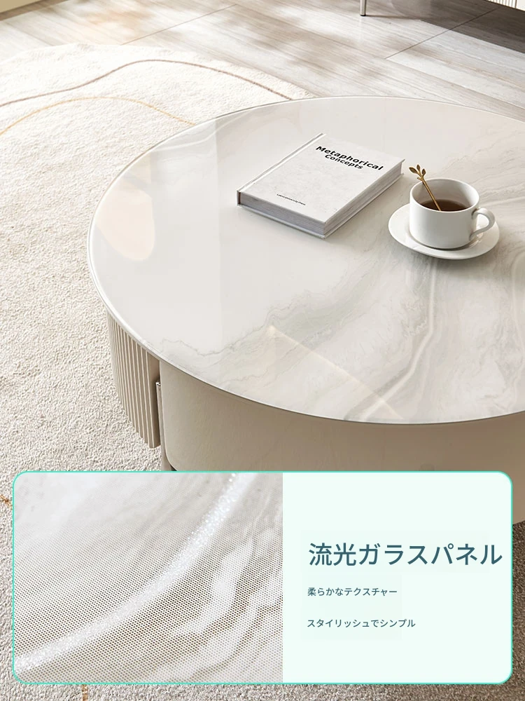 リンシー家具クリーム風ガラス製テレビキャビネット&コーヒーテーブル - おしゃれで機能的なリビングの必需品!洗練されたデザインで、お部屋を一層魅力的に演出します。