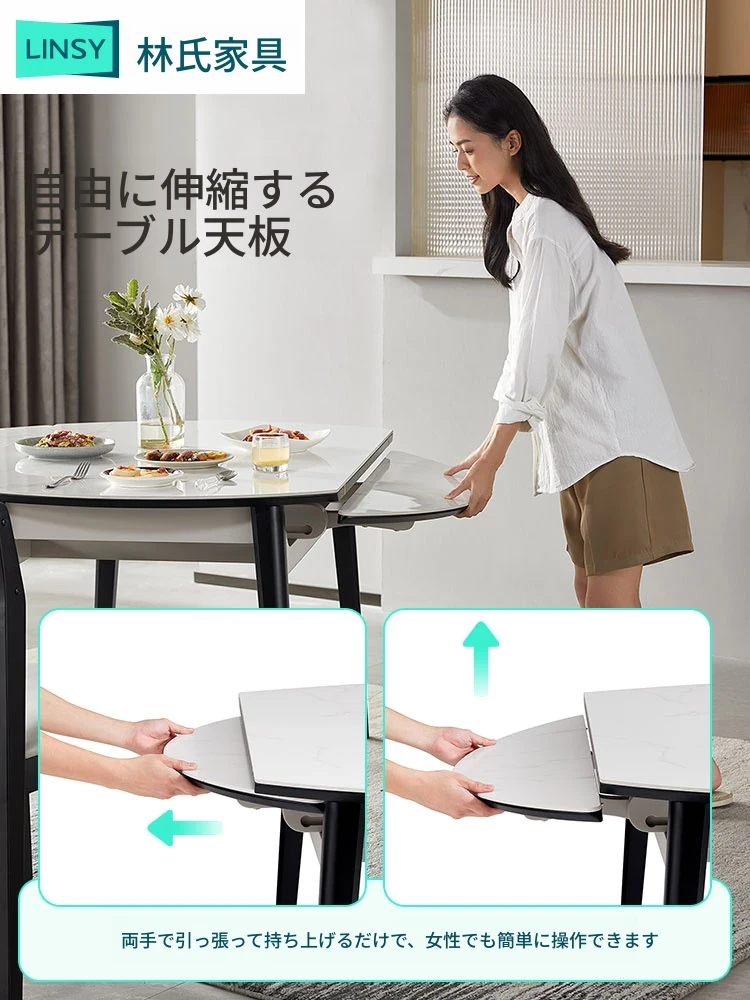 林氏家具 モダンシンプルな天然木製 脚付き ストーンテーブル 折りたたみ式 拡張可能なダイニングテーブルチェア セット 林氏木業628 で、快適な食事空間を実現!