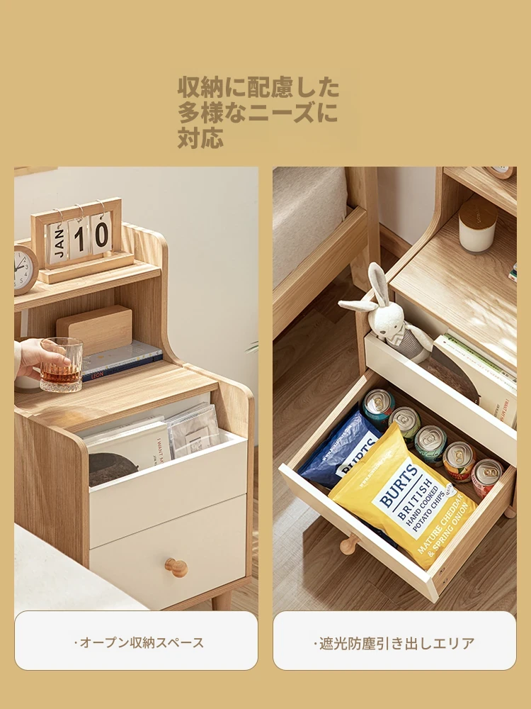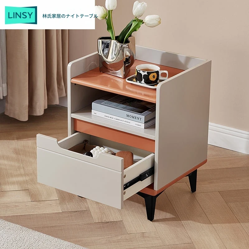 林氏家居のシンプルなナイトテーブル!小型でコンパクトなベッドサイドキャビネット。寝室にぴったりの収納棚。スタイリッシュなデザインで、空間を有効活用!林氏木業の高品質な家具です。