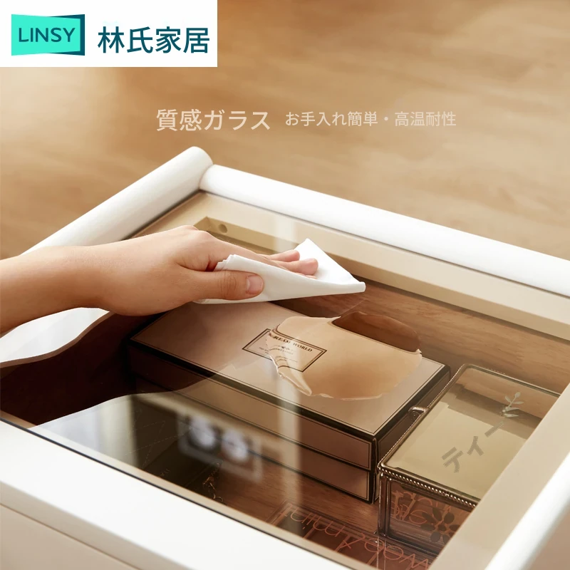 林氏家居のクリームカラー無垢材ドレッサー&チェスト一体型コンパクトメイクアップデスクセット 2024年新作!優雅で機能的なデザインで、おしゃれなお部屋を演出します。