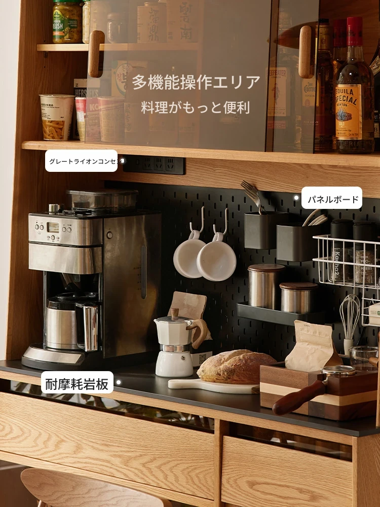 林氏家具 おしゃれなオーク製ダイニングサイドキャビネット 二段式 ストーンカウンター ワインキャビネット リビング2024年新作 穴あきデザインでお部屋をスタイリッシュに!林氏木業の品質を体感ください!