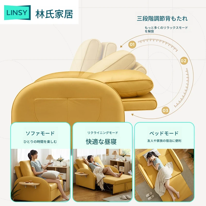 リンシー家具リビングルーム用一人用ソファベッド 多機能 小型スペース向け 折りたたみスライド式 ライフスタイルを豊かにする快適さ【リンシー木業】